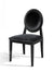 The Alice transitional black lacquer fabric dining chair features a charming design with a distinctive oval backrest, offering firm support. The legs at the back support the backrest, which is raised a little above the seat. Black fabric upholstery provides comfort when seated. This dining chair presents a sturdy and strong construction.