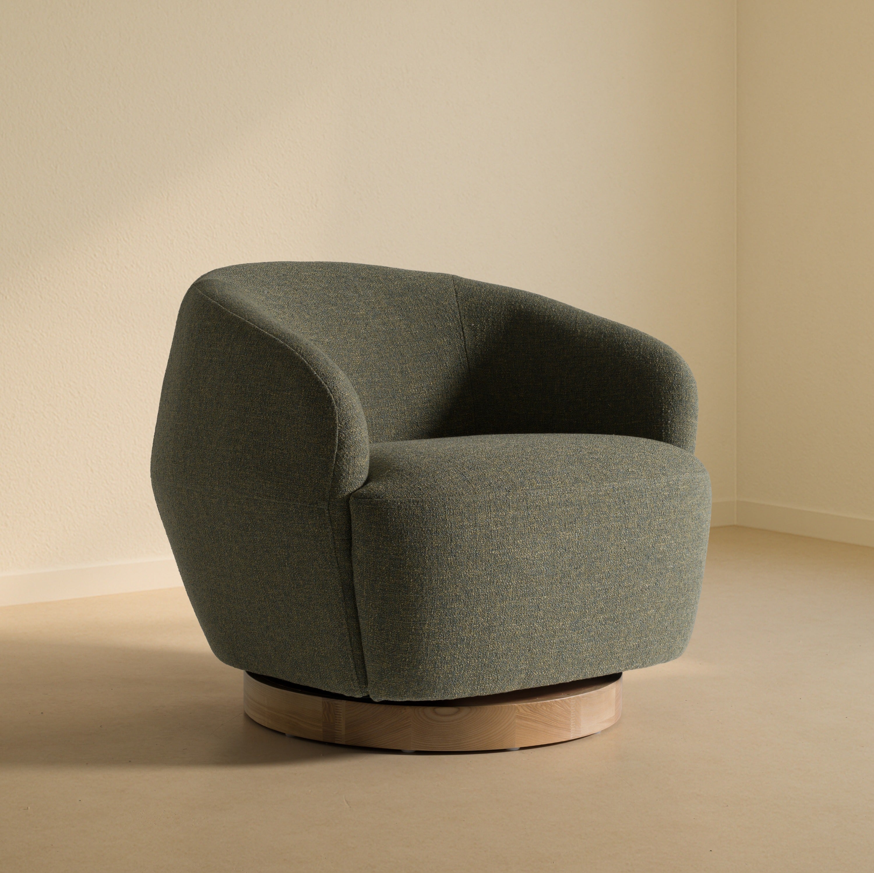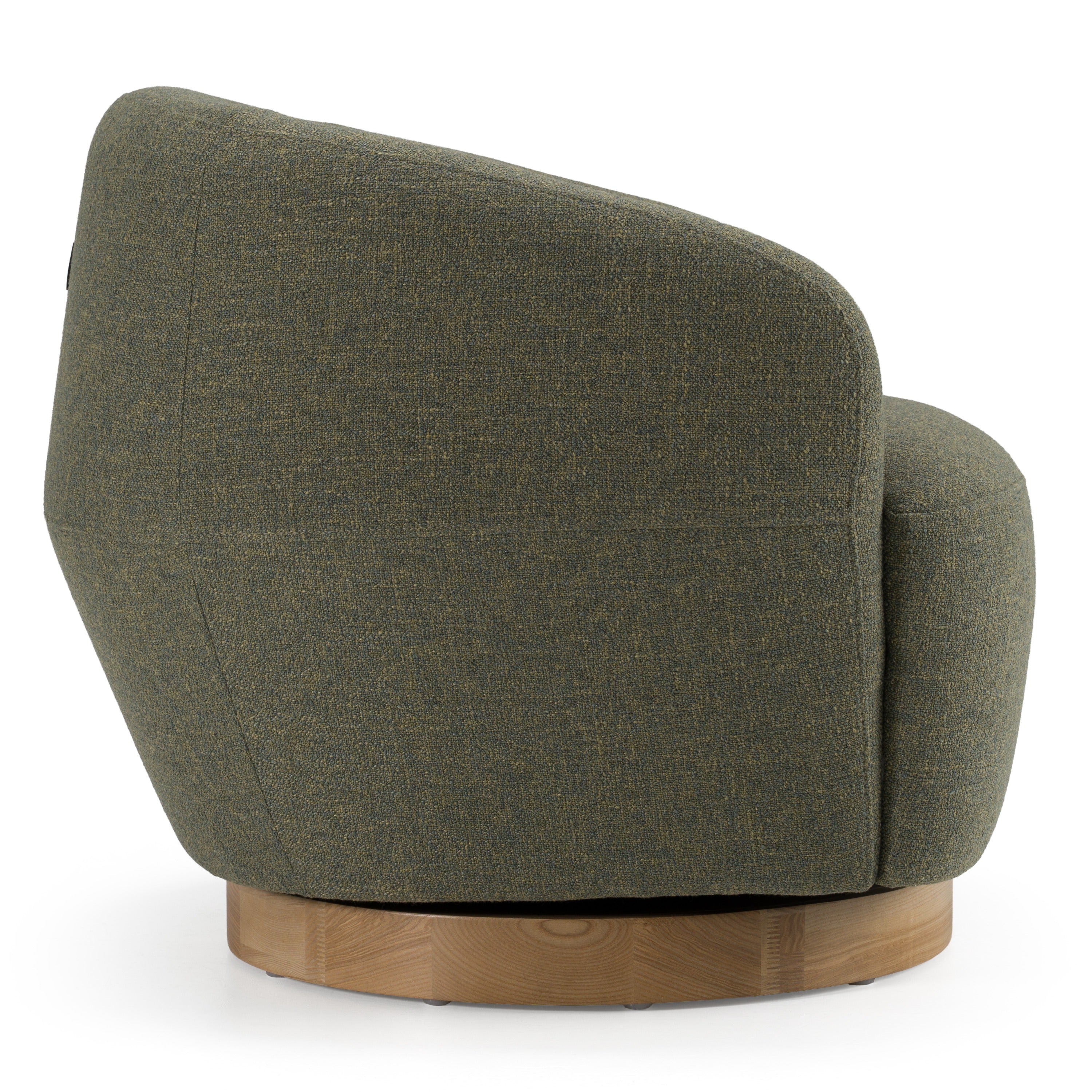 The Divani Casa Agatha Swivel Accent Chair exudes modern elegance with its sleek, rounded silhouette. Upholstered in a sophisticated hemp fabric, the chair features a soft green hue that adds a refreshing touch to any décor. The plush cushioning ensures comfort, while the stylish swivel base offers both functionality and a unique design element. Perfect for lounging or enhancing any living space, this chair seamlessly combines form and function, making it a standout piece in contemporary interiors.