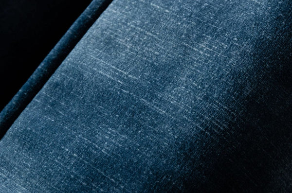 This mid-century blue velvet accent chair features soft, velvet upholstery with a tufted back cushion. This chair features a removable seat and back cushions, as well as removable cushion covers, which are filled with comfortable foam. There's also one throw pillow included. The solid black chair legs feature gold tapered tips, which add another element of style.