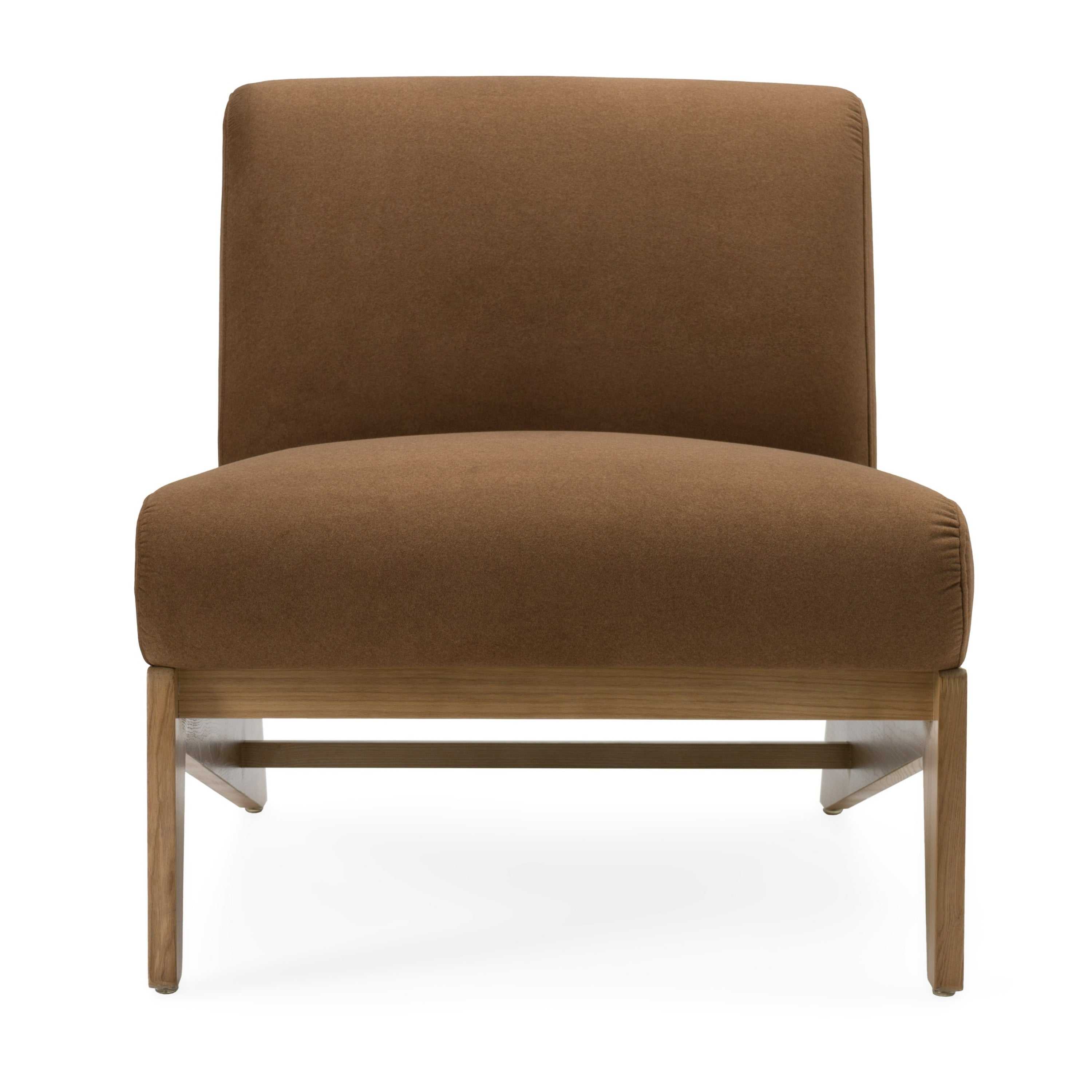The Vance Modern Brown Fabric & Wood Accent Chair seamlessly marries timeless design with modern sophistication. Upholstered in rich Vesper Tobacco fabric, this chair exudes warmth and elegance, offering a plush seat and supportive back for ultimate relaxation. The solid poplar and wood frame showcases artisanal craftsmanship, adding a touch of natural beauty to its refined silhouette. Perfect as a statement piece or a complement to any decor, the Vance accent chair creates an inviting ambiance while elevating the aesthetic of your space.