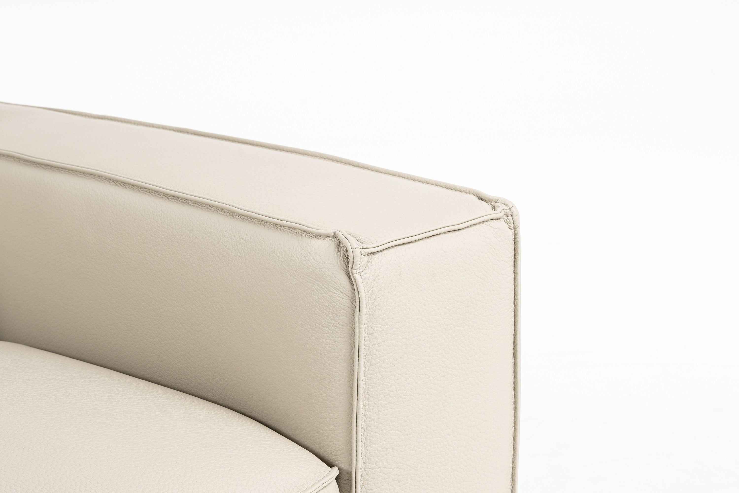 The Lamod Italia Soho armchair showcases a sleek, modern design with its Italian grey oyster leather upholstery and minimalist silhouette. Its wide, geometric shape is complemented by subtle cushioning, providing both comfort and style. The chair rests on sophisticated metal legs, adding a touch of elegance and ensuring a sturdy foundation. Ideal for contemporary interiors, this lounge chair exudes a refined aesthetic that enhances any space. Perfect for creating a sophisticated seating area, it invites relaxation while maintaining a chic, polished look.