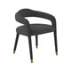 Your dining room can become a work of art with the Lucia Chair. Featuring a beautifully sleek velvet fabric, tastefully curved back and arms, and elegant gold tipped legs; this chair is sure to elevate any dining experience!