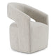 The Andie accent chair provides convenient seating featuring a sleek Walnut finished rubber wood frame and linen blend fabric upholstered cushions with matching piping, the back cushion has a stylish flair with 2 button tufts. It features a slatted back and seat design to keep the cushions aerated while the stadium-shaped arms curve in the mid part for a more relaxed arm position.
