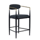 Introducing the Modrest Buchtel bar chair, a stunning blend of Mid-Century Modern aesthetic and contemporary flair. Featuring a sleek dark grey upholstered seat and backrest, the chair exudes elegance, complemented by gold accents on the armrests. Its tall, tapered black legs offer a striking contrast, ensuring stability while enhancing its sophisticated silhouette. Perfect for stylish kitchen islands or bars, this chair adds a touch of refined warmth to any space. Ideal for those with a discerning taste in design, it seamlessly elevates modern interiors.