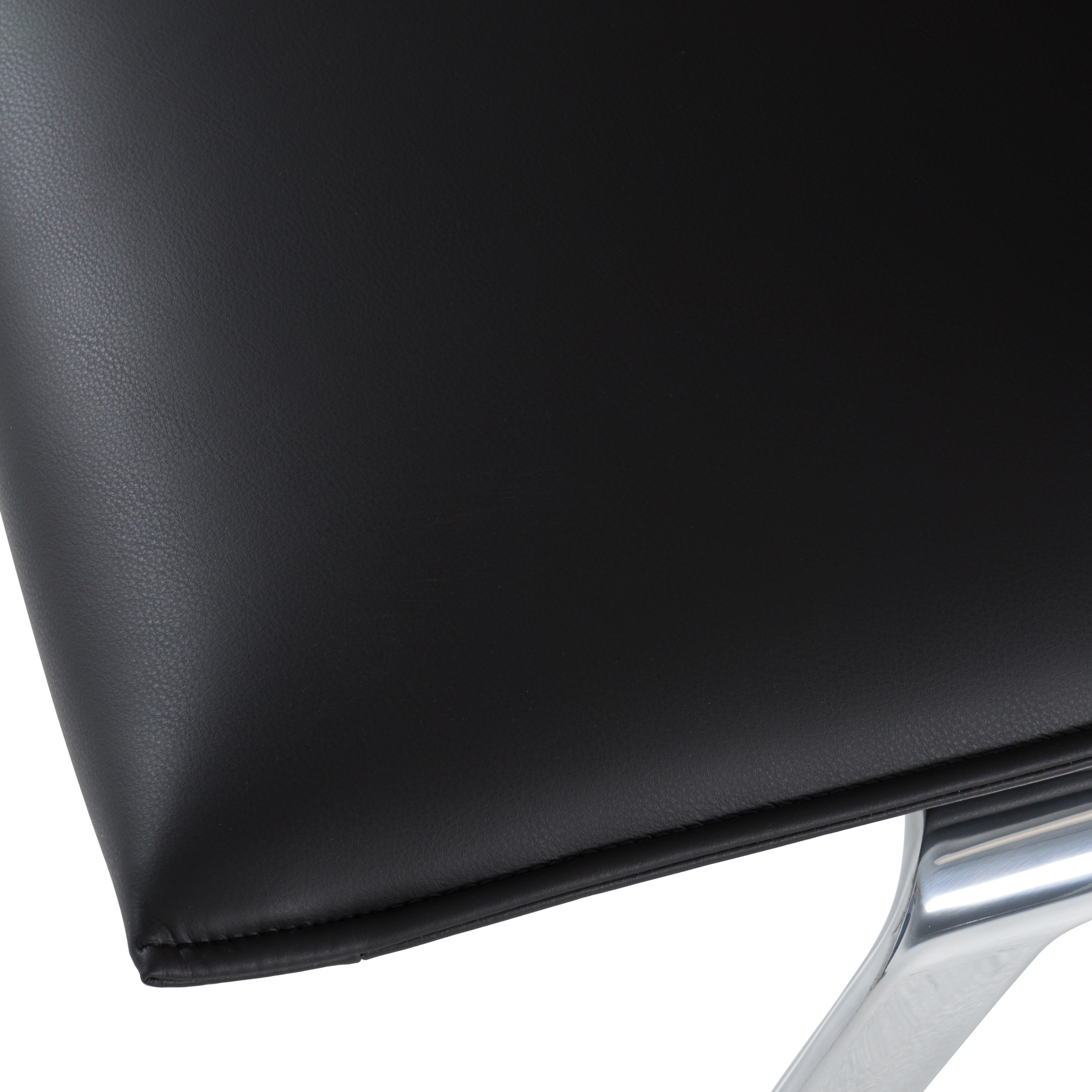 The Modrest Cedric is a striking modern accent chair, featuring sleek black vegan leather upholstery that adds elegance to any space. Its minimalist design is accentuated by the subtly contoured back and generously padded seat, delivering both style and comfort. The chair is supported by stylish stainless steel legs, offering a sturdy yet light appearance. Perfect for contemporary interiors, this piece effortlessly complements various decor styles, making it an ideal choice for living rooms, offices, or lounge areas.