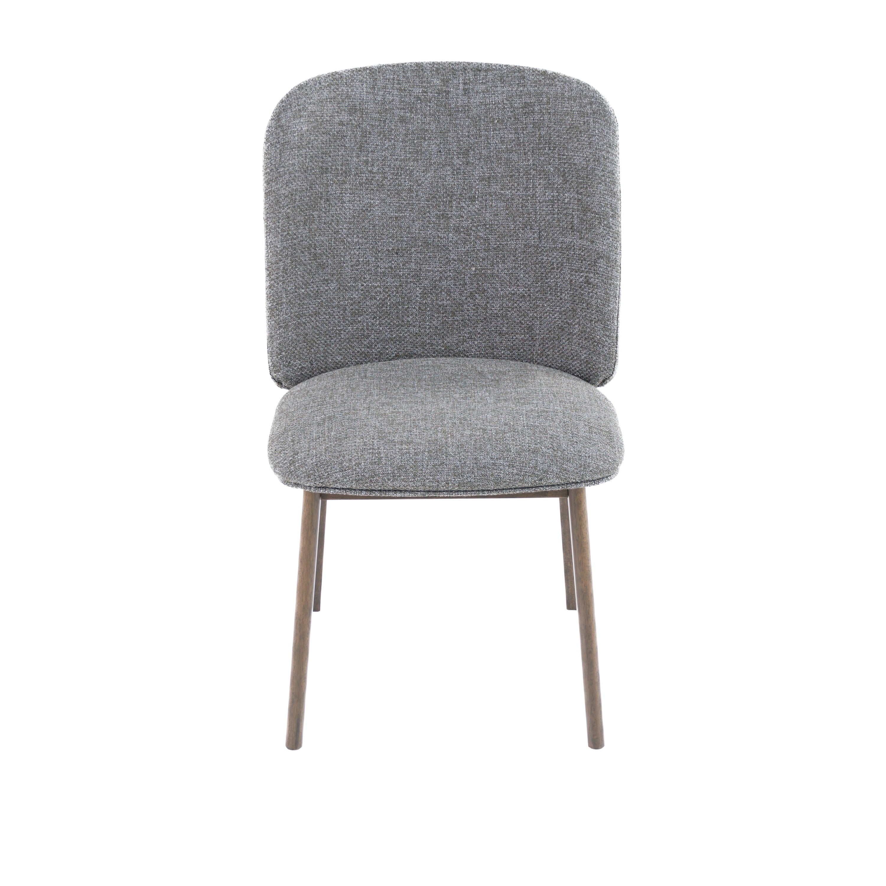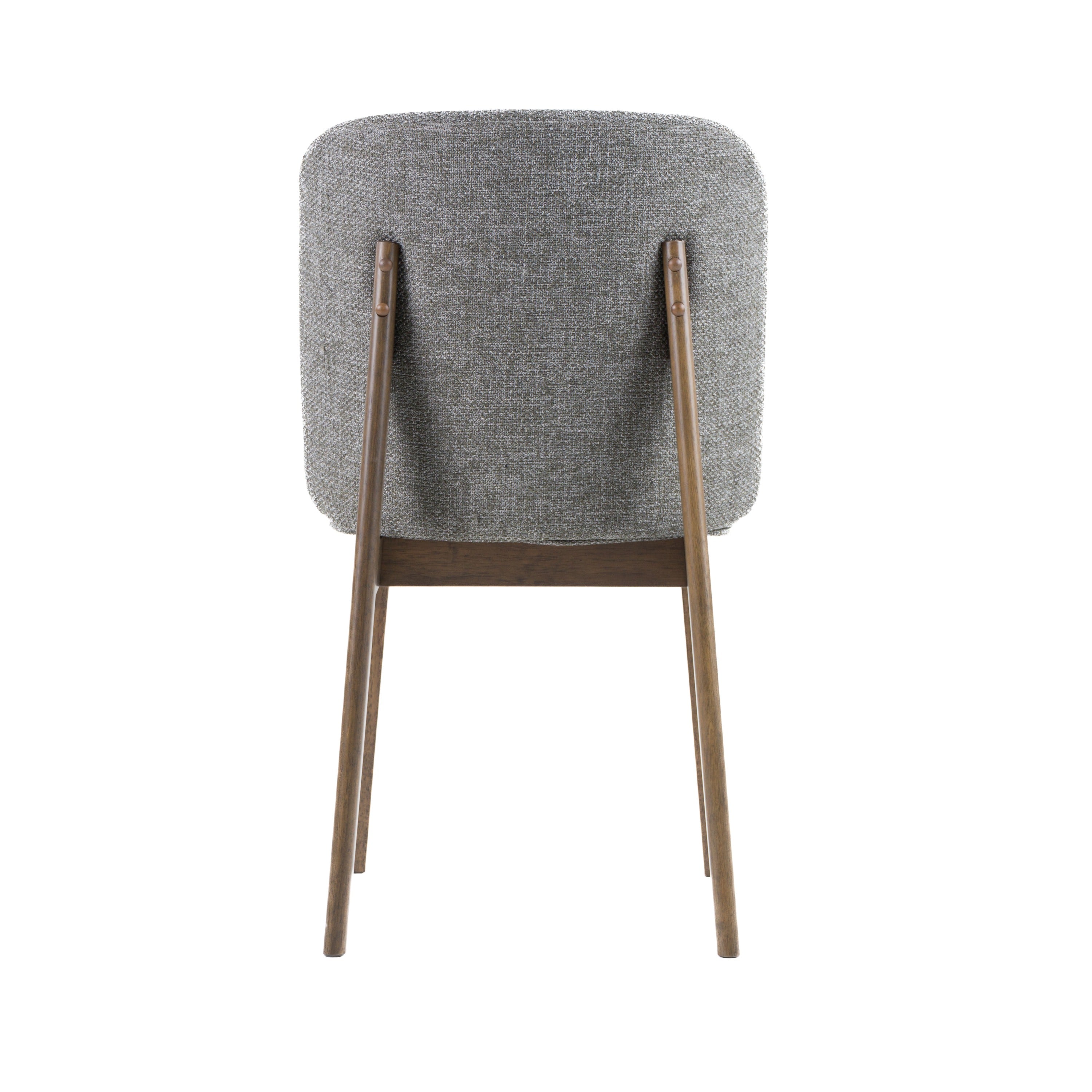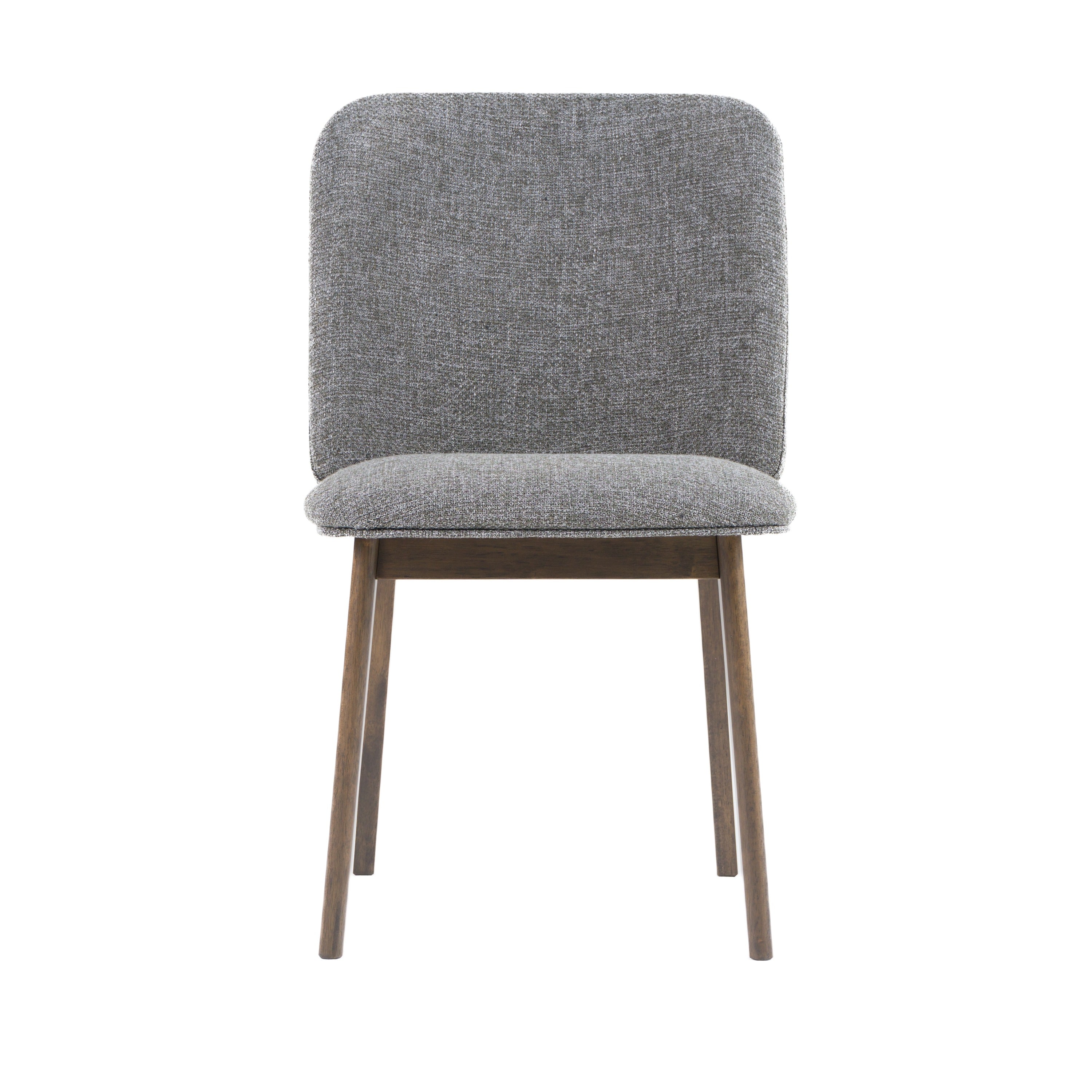 The Modrest Costello - Mid-Century Modern Grey Fabric & Wenge Dining Chair (Set of 2) offers a stylish addition to any dining space. This set includes two upholstered side chairs, crafted with a blend of 77% polyester, 15% acrylic, and 8% cotton in a sophisticated grey and night wenge color palette. The chairs are constructed from manufactured wood and solid rubberwood, providing both durability and a weight capacity of 220 lbs. Minimal assembly is required, and maintenance is simple with a dry soft cloth for cleaning.