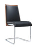 The Modrest Morgan Modern White & Walnut Dining Chair combines flair and toughness featuring white leatherette upholstery against a Walnut veneer back. A polished chrome frame keeps this dining chair whole. Sold in sets of 2 and requiring some assembly, this modern dining chair has a dimension of W22" x D17" x H34".