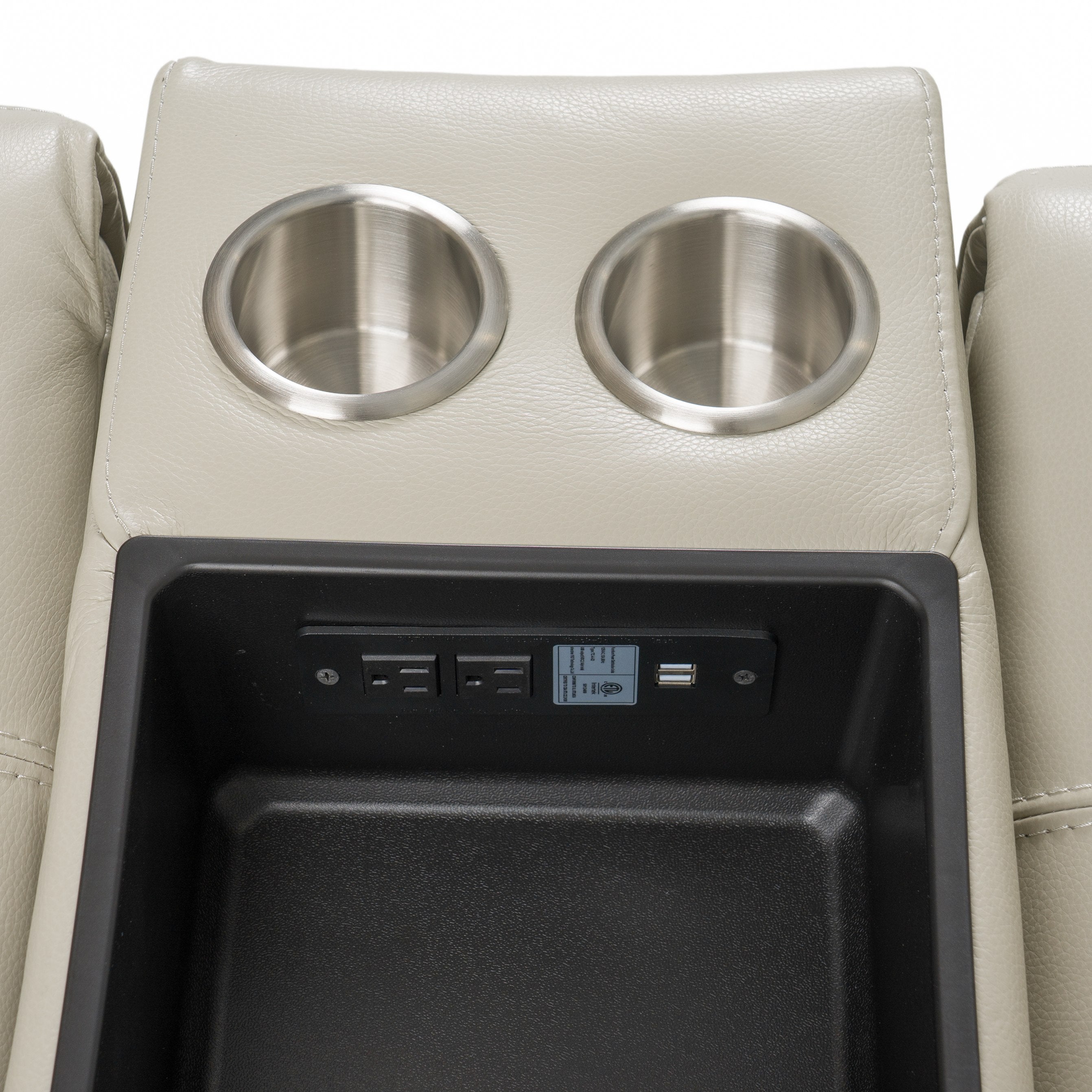 - Upholstered in Light Grey/Beige Top Grain Leather/Leather Split