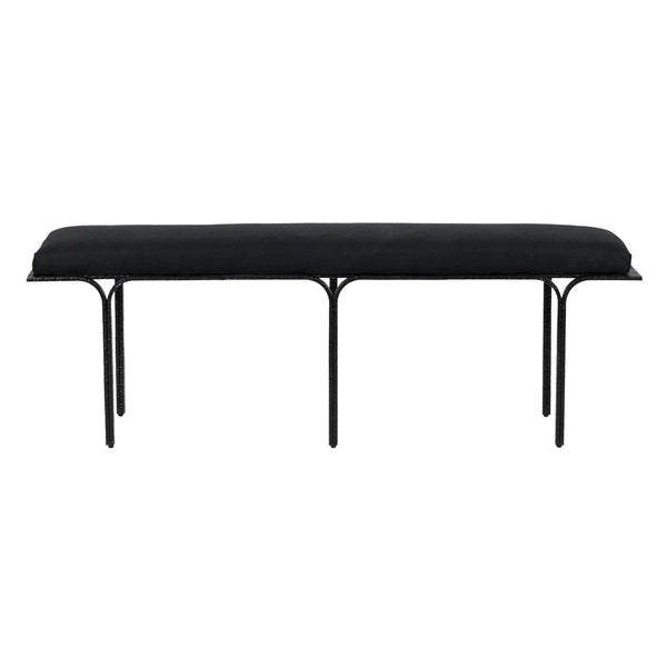 The Bryn Black Bench is the perfect addition to your bedroom, living room, or entryway to add a moody and modern touch. This bench is expertly upholstered with high-quality linen fabric, providing a luxurious and soft seat. The sturdy iron legs add a contemporary and industrial touch to the design. The sleek design and neutral colors of this bench effortlessly blend and complement any design style.
