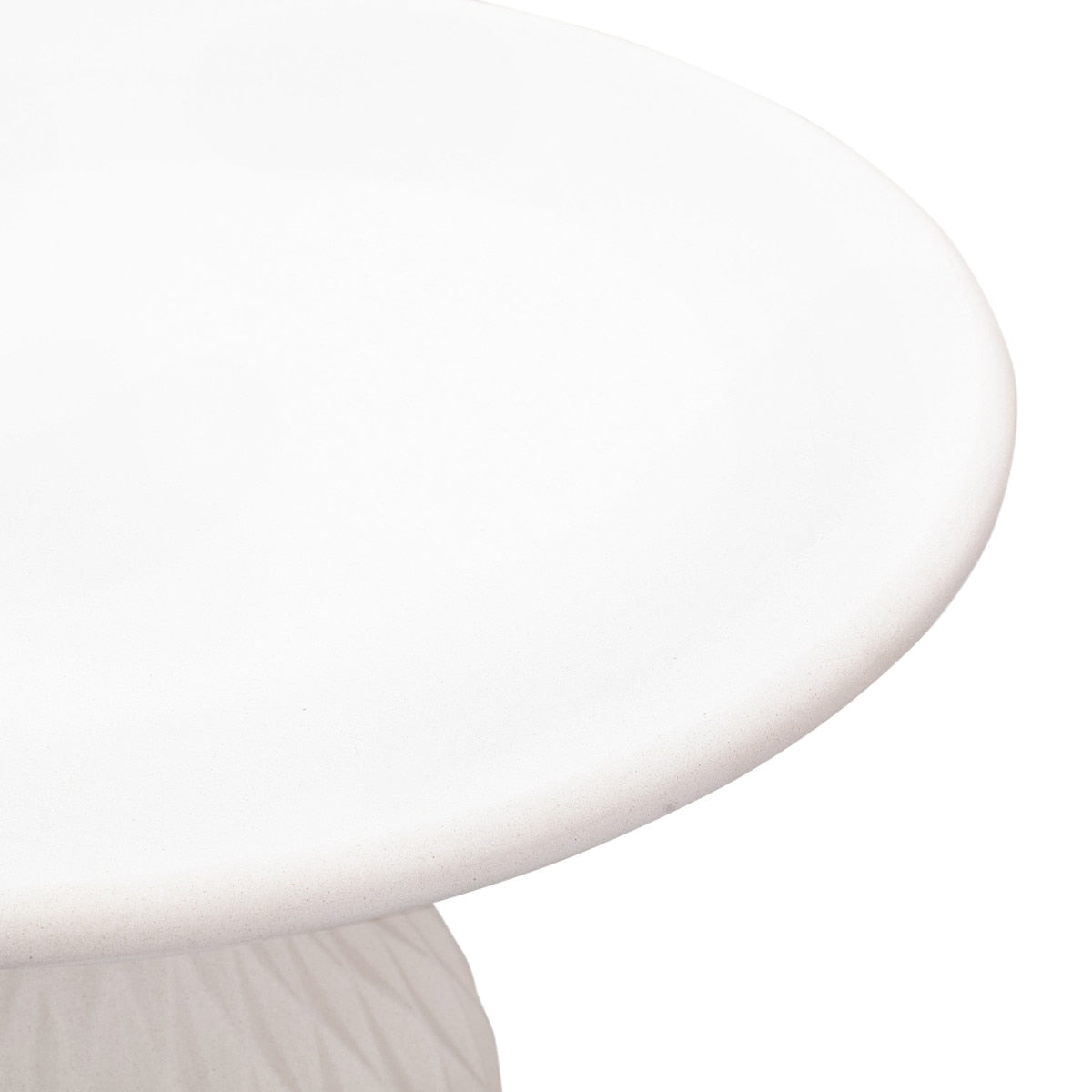 Stunning indoors or outdoors, the Tulum table brings glam style to your living experience. Masterfully crafted from concrete, this round coffee table measures 27.5 inches in diameter and boasts a gorgeous diamond-pattern design on its pear-shaped pedestal base.