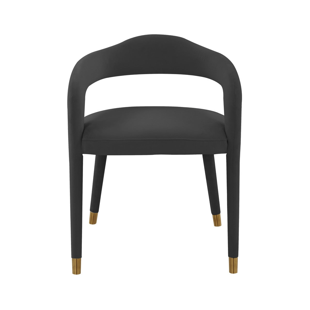 Your dining room can become a work of art with the Lucia Chair. Featuring a beautifully sleek velvet fabric, tastefully curved back and arms, and elegant gold tipped legs; this chair is sure to elevate any dining experience!