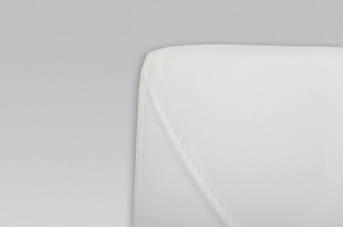 This stylish design contours in shape with an extended back support not only for design but for additional comfort and has a unique leg base. The chair features a stylish L-shaped chrome support and leatherette descending lavishly to the base of the chair to give off a finish of sheer elegance.