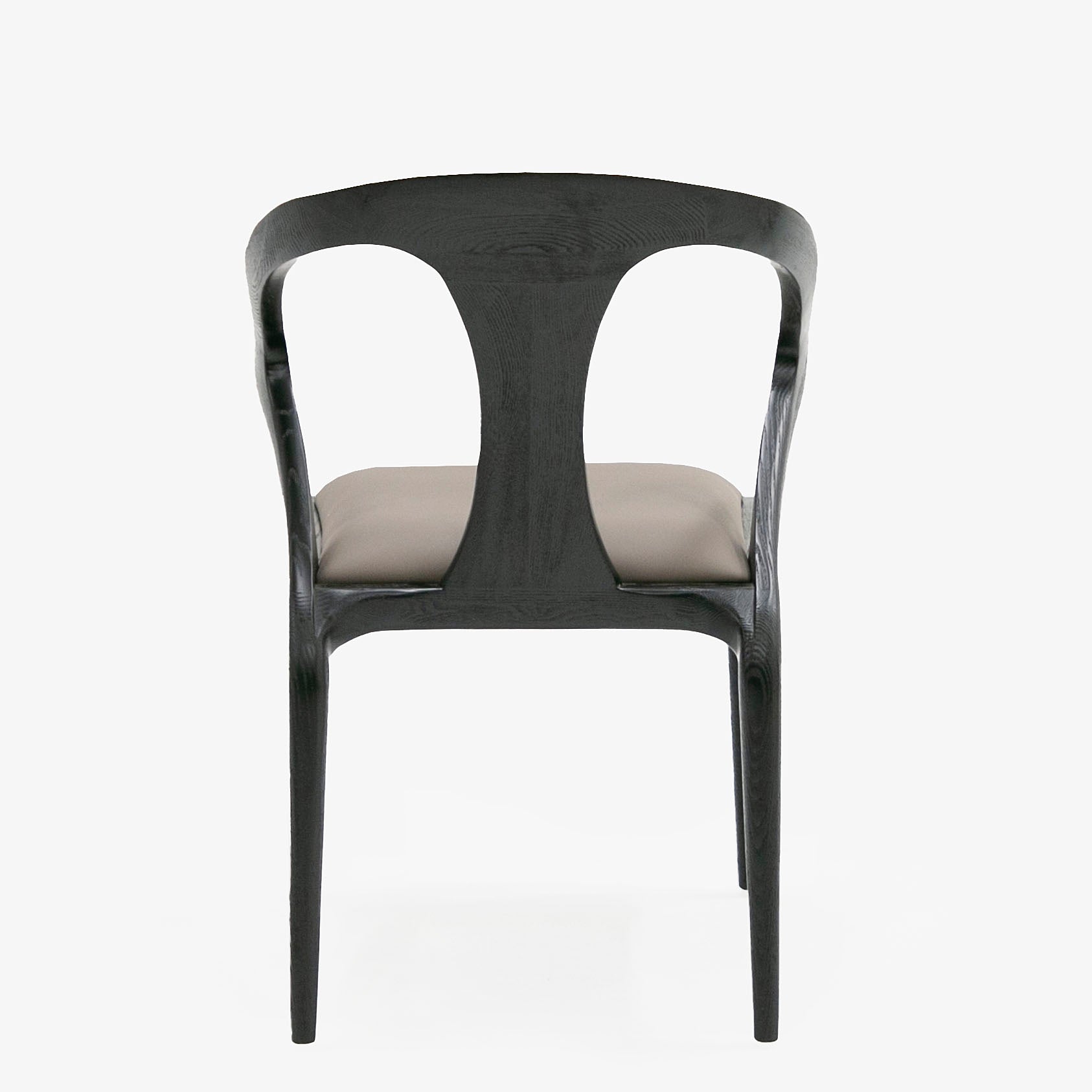 The Campbell Dining Chair, with its angular silhouette, makes it the perfect addition to any mid-century dining room. A solid wood frame means this chair is sure to hold the test of time. Its curvilinear frame is juxtaposed by the angular armrests while the dark grey vegan leather upholstery adds a clean look.