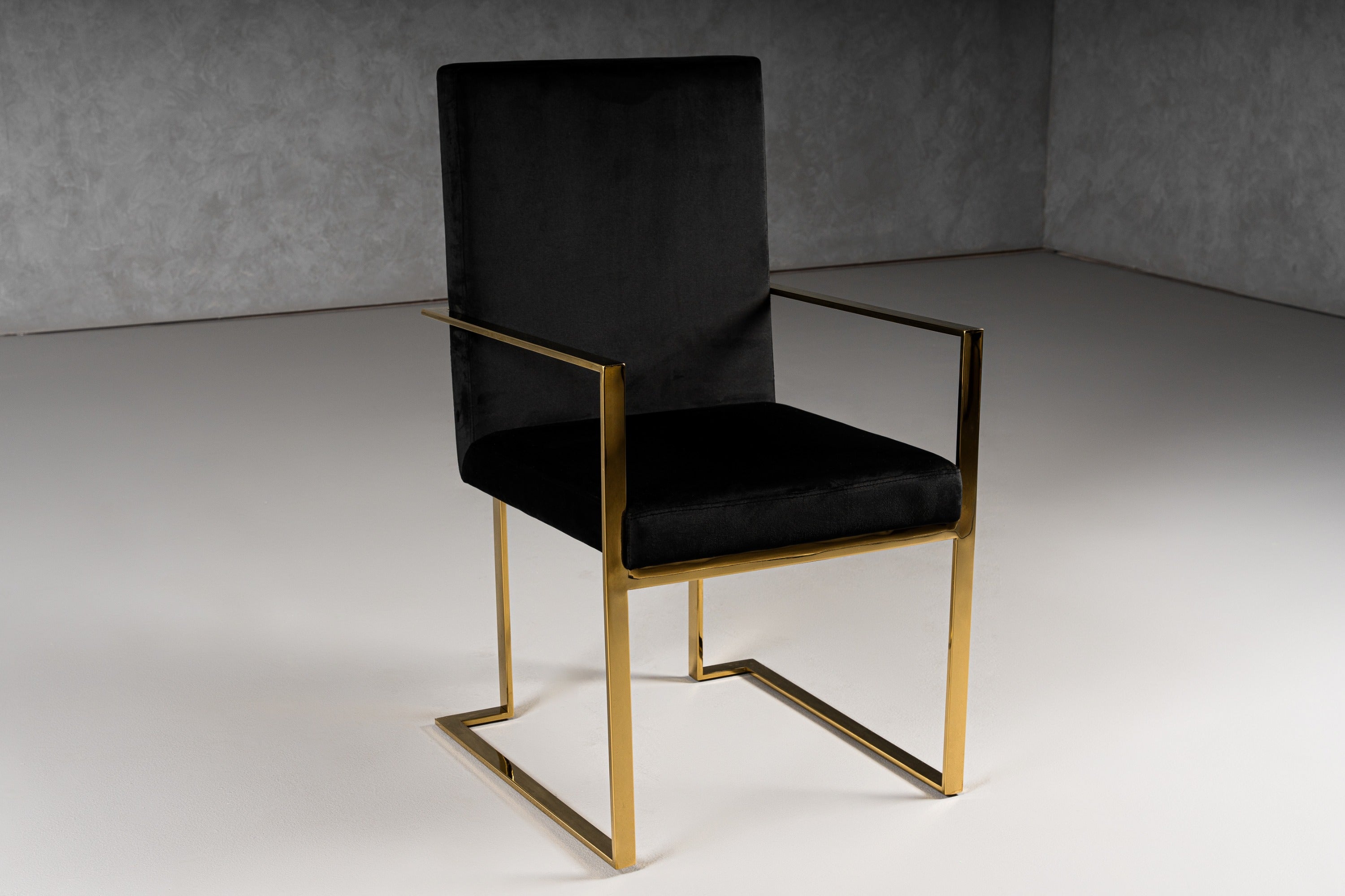 The Fowler Dining Chair is a simple velvet dining chair with an elegant frame and beautiful upholstery. The black velvet cushioned upholstery of these dining chairs make them comfortable and elegant. Sure to turn heads with the champagne gold stainless steel exposed frame. It is the perfect addition to your glam home.