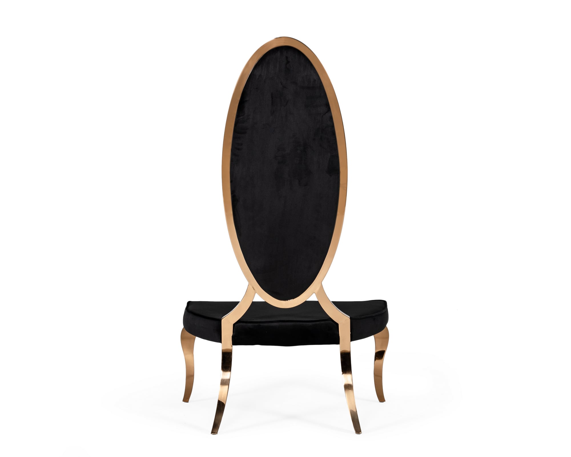 The Mills Dining Chair Set is sure to knock your socks off. The gold stainless steel frame creates a glamorous atmosphere while the rich black velvet upholstery adds comfort. The high back and wide seat are designed for your comfort and accessibility. It will fit perfectly in any traditional or glam dining room.