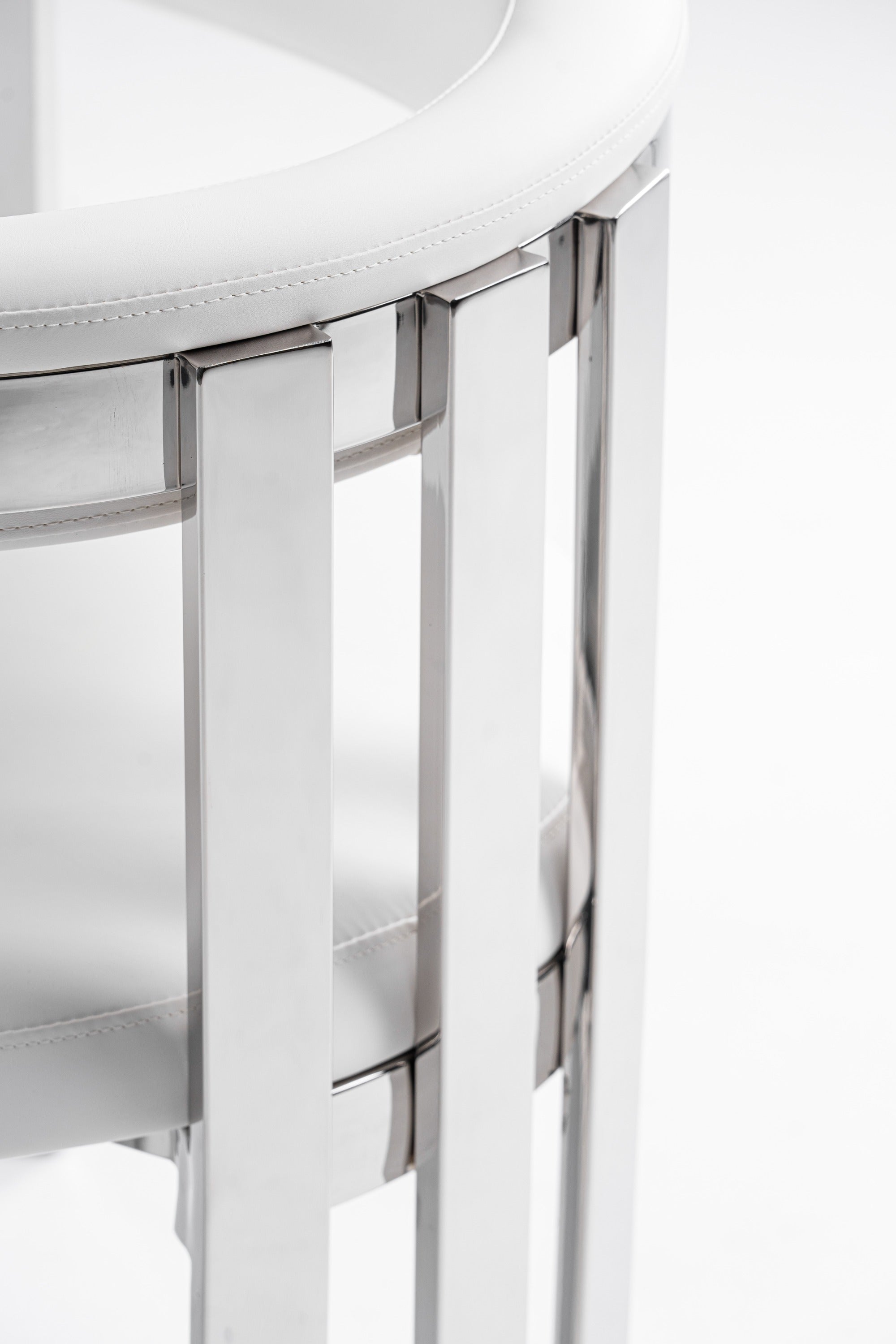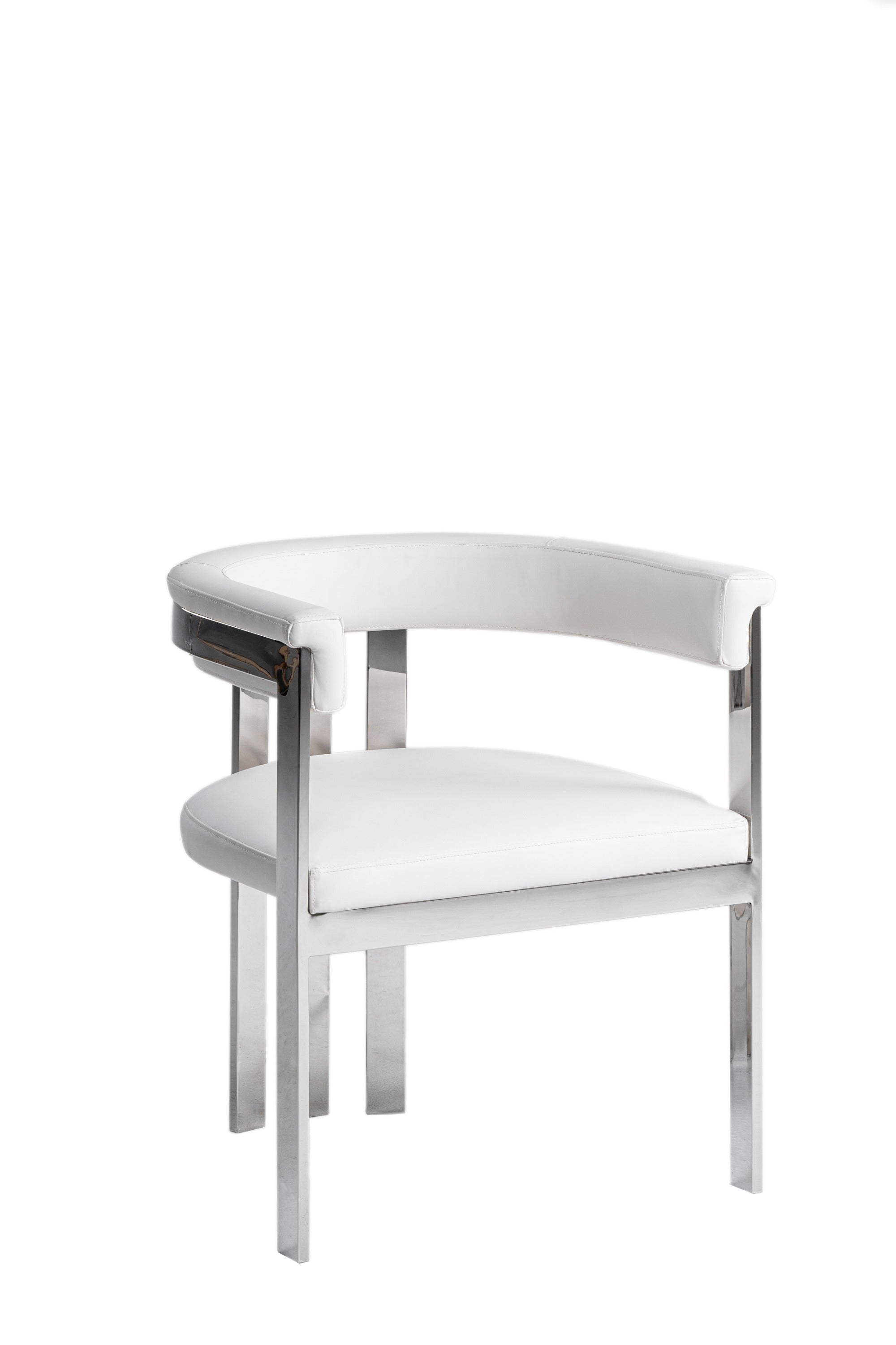 The Pontiac Dining Chair redefines luxury with its rounded lines and smooth leather upholstery. The stainless steel frame and white leather cushions provide style and support for your dining experience. The Pontiac combines excellent quality materials and superb design that will make wonderful additions to your dining table!