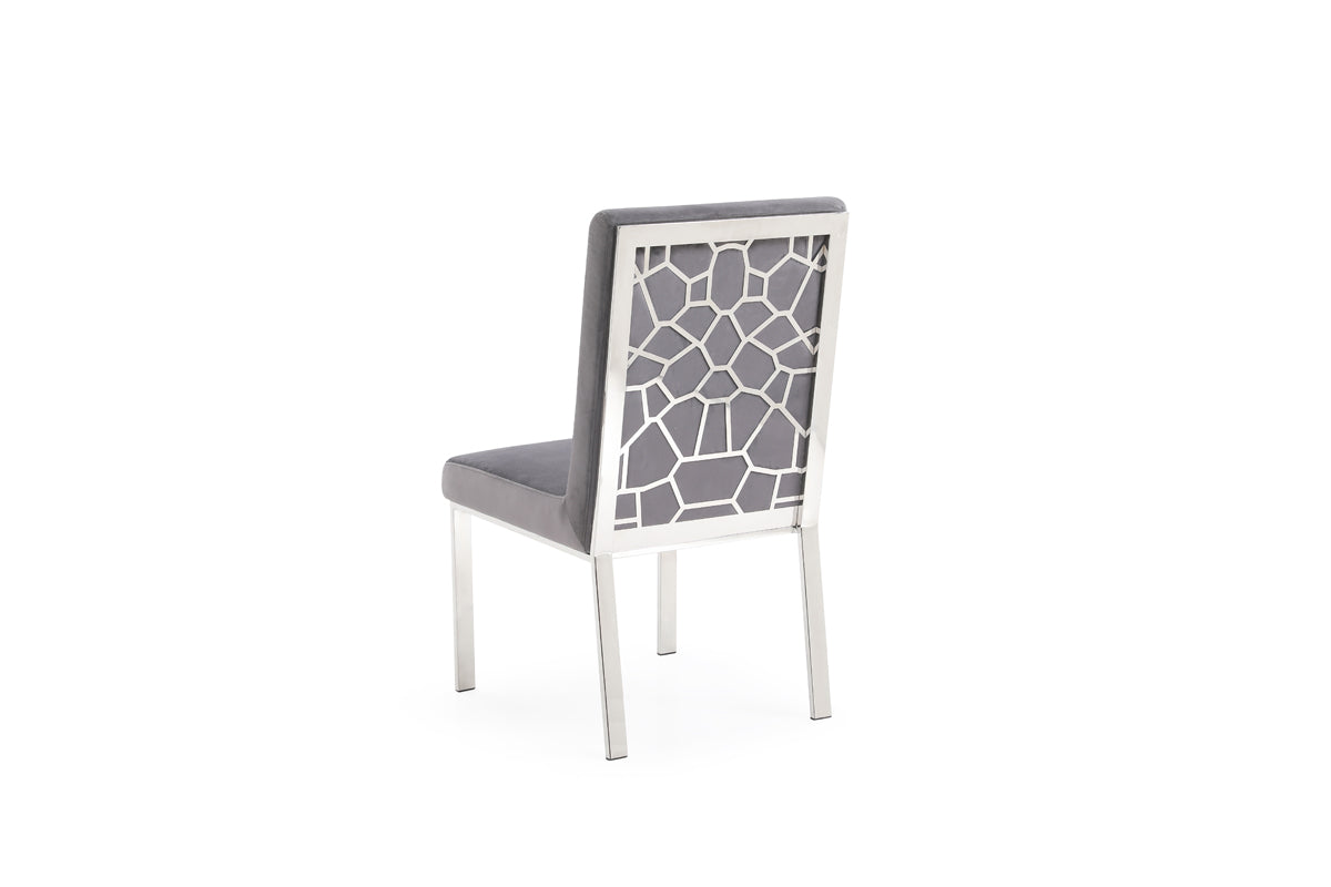 Add glam to your dining room with the Modrest Reba Modern Grey Velvet & Stainless Steel Dining Chair. Donning simple lines, it boasts of a full back and seat design upholstered in silky grey velvet fabric. A polished stainless steel frame that features a cobweb back design and four legs provide sturdy support and also offers a stunning contrast to the grey fabric. This modern dining chair allows you to enjoy a classic style dining experience in your home.