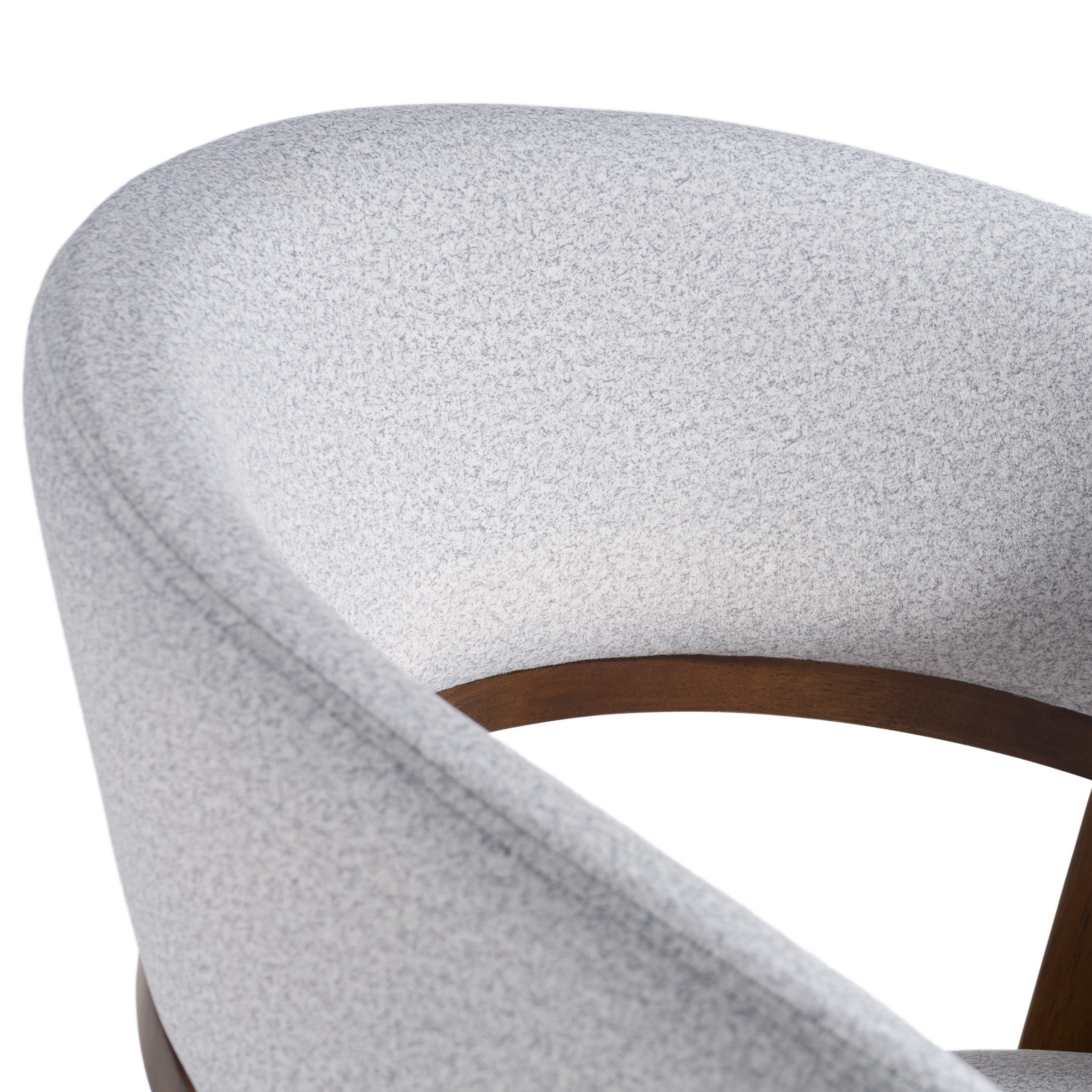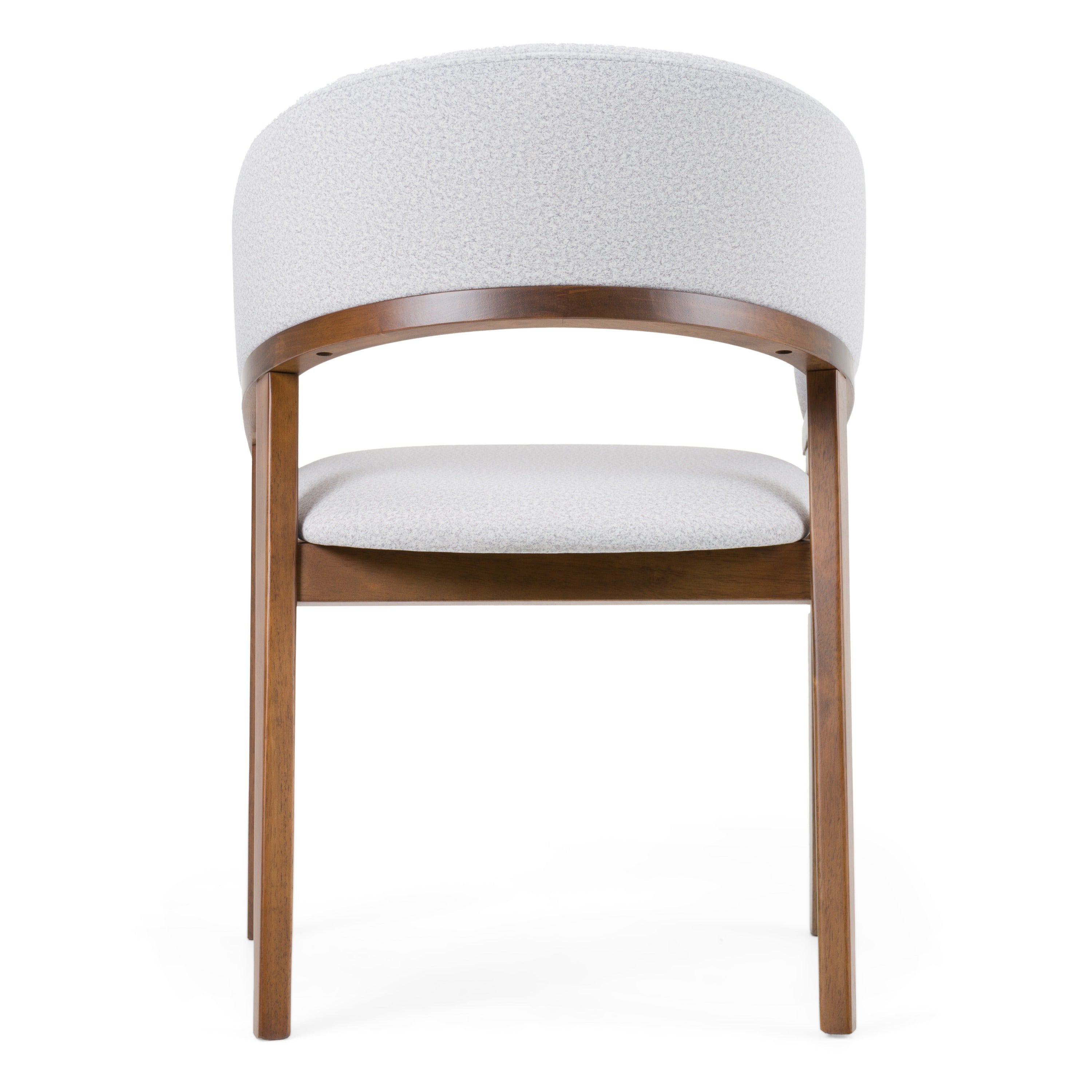 The Modrest Truman - Mid-Century Modern Grey & Walnut Dining Chair is a sleek and stylish addition to any dining space. Upholstered in 100% polyester fabric, the chair features a sophisticated silver and walnut color scheme that complements its solid rubberwood frame. With a weight capacity of 220 lbs, this fully assembled chair combines durability and comfort. For maintenance, simply wipe clean with a dry soft cloth to keep it looking its best.