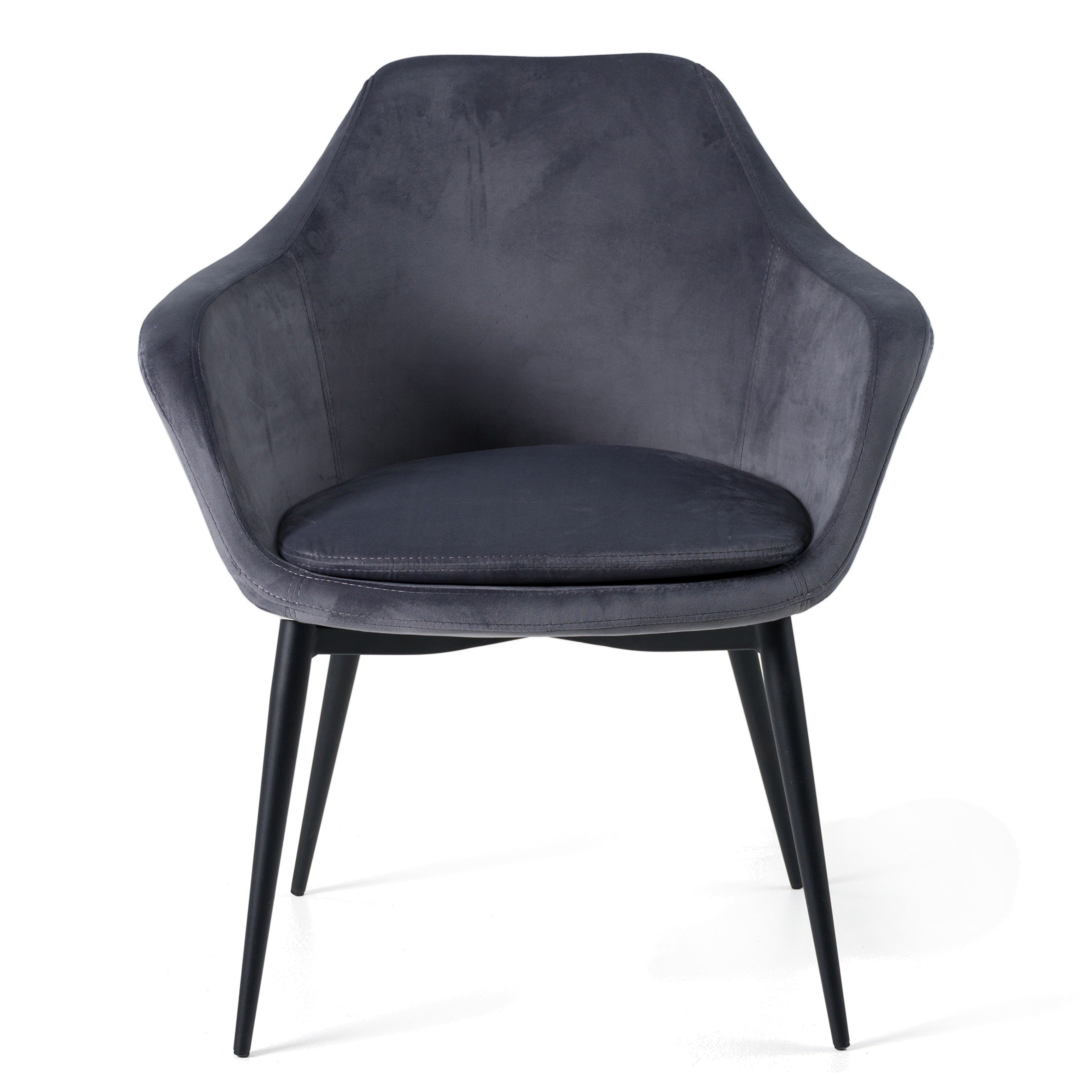 The Wilson Dining Chair is a perfect example of modern dining. The dark grey velvet upholstery is soft and creates an interesting texture against other contemporary furniture. Style with a walnut table and colorful rug to get the most out of your designing experience.