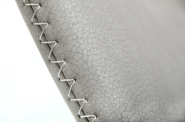 The Modrest Zach Modern Grey Eco-Leather Dining Chair features a bodice-like back design upholstered in light grey CU0152 eco-leather. Durability is seen with the stitched edges and features a stitched brown accent at the back. Sturdy brown wooden legs provide durable support to this chair. Sold in sets of 2, this modern dining chair has a seat depth of 16" and a seat height of 17" and a dimension of W17" x D23" x H33".