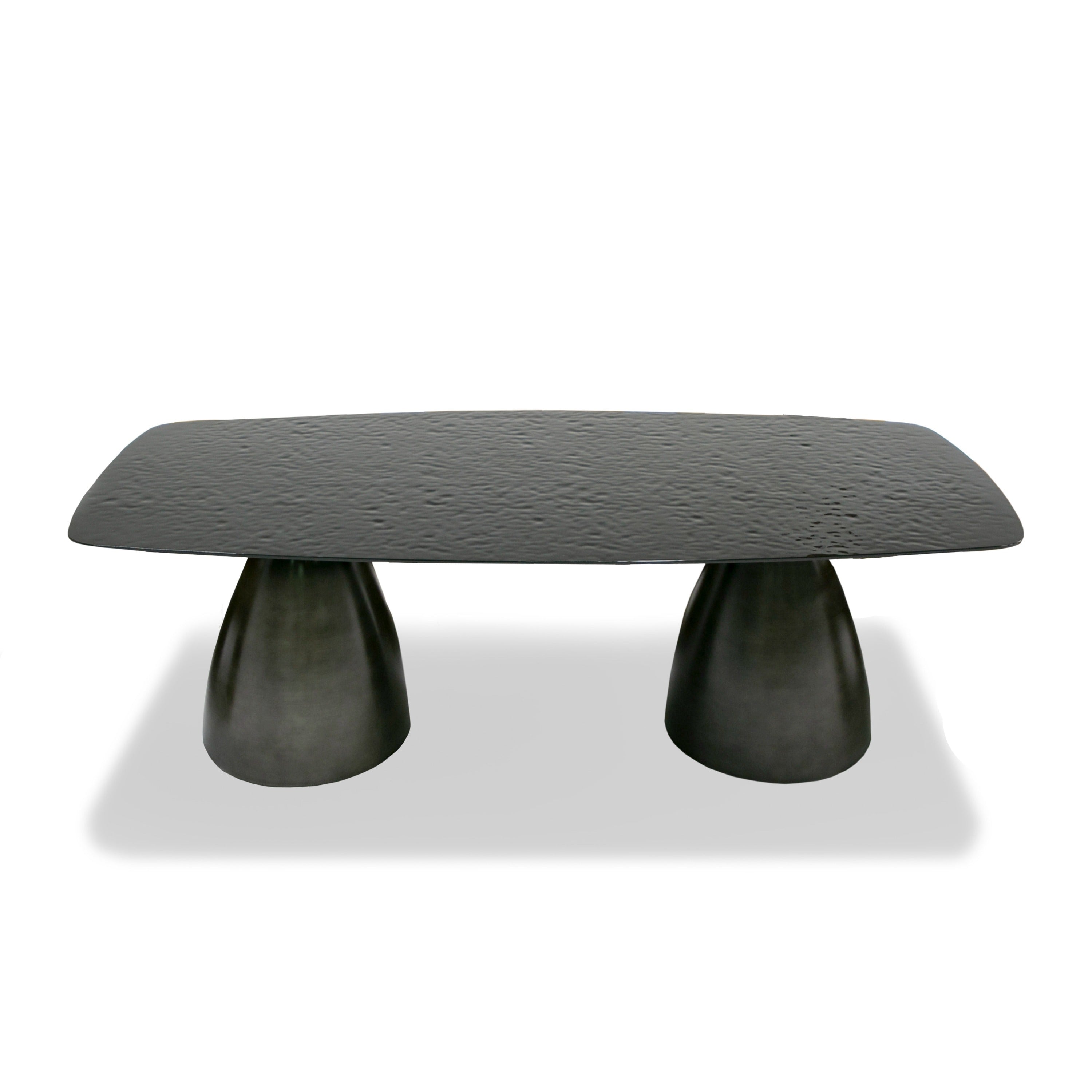 Dine in style with the Modrest Calexico Rectangular Dining Table! This modern table features a Black Wave Glass Top and Brushed Black Aluminum Double Pedestal Base that offer a stylish addition to your dining room. Able to seat up to 8 people, the Calexico combines excellent quality materials and superb design that makes it a stunner in any dining space. The Calexico collection also includes a Round Dining Table that seats up to 4.