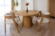 Statement Contemporary Dining Table with twisted solid wood double pedestal base in Walnut finish and temprered Glass table top.