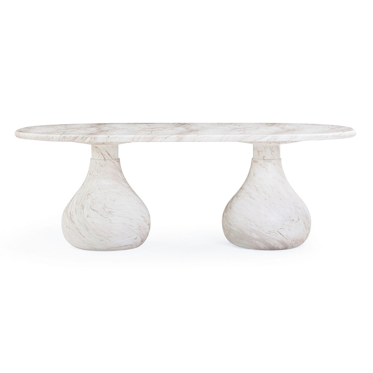Introducing the flirtiest piece of furniture you'll ever meet - the Smooch Indoor/Outdoor Dining Table. Crafted from concrete with a marble print for easy cleaning and a surface so smooth it's practically winking at you, this cheeky charmer works its magic both indoors and out. With Hershey's Kiss-shaped pedestal bases, it's not just a table; it's a meet-cute of style and ingenuity.