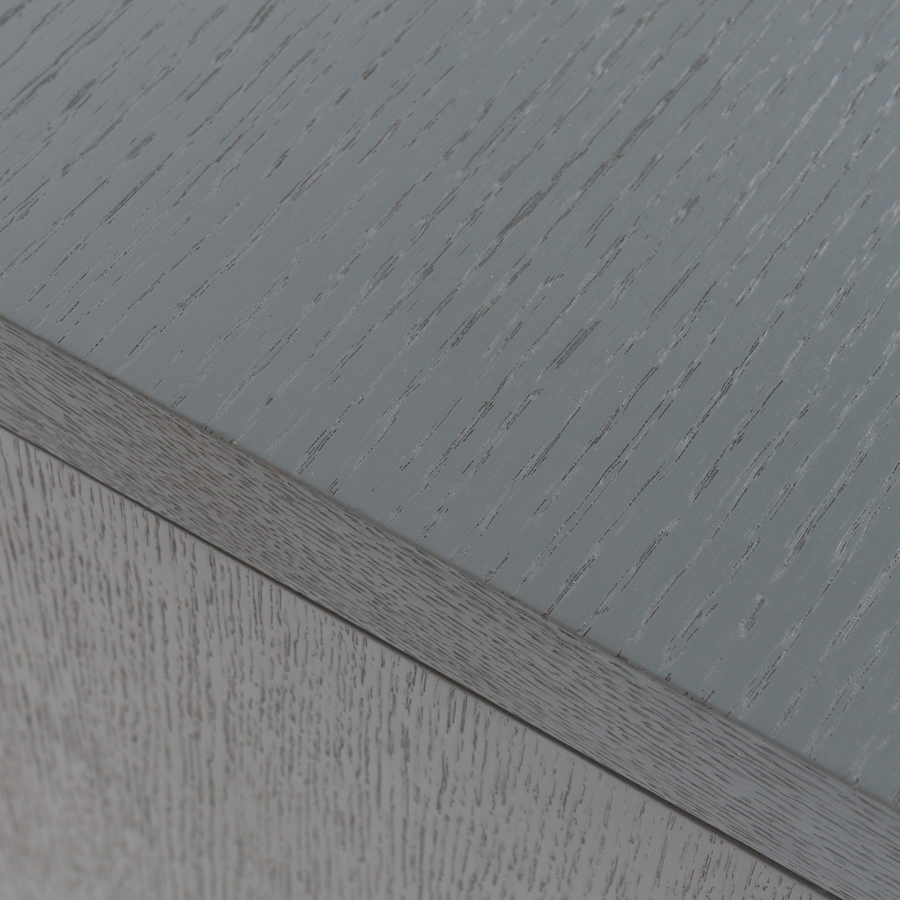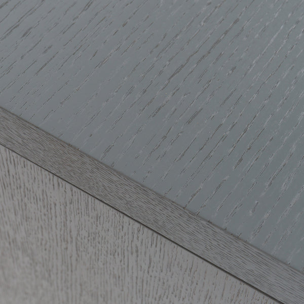 The Jolene Dresser is the perfect modern example of design. The grey oak veneer of the six drawers is smooth and modern. Surrounding the front and back of this piece is a polished stainless-steel frame that contrasts the grey of the drawers. All drawers are self-closing creating a truly contemporary piece.