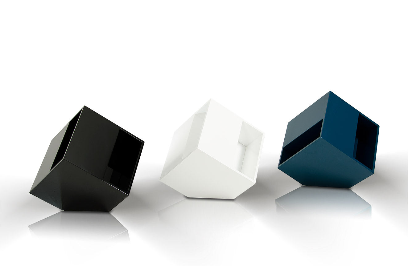The Book modern blue magazine holder end table takes on a cube shape, but does not stand flat on the floor. It stands tilted, making it unique yet can hold books, magazines, remote control and other items on its sides efficiently. With its unique design, it also serves as a useful decoration in the living room.