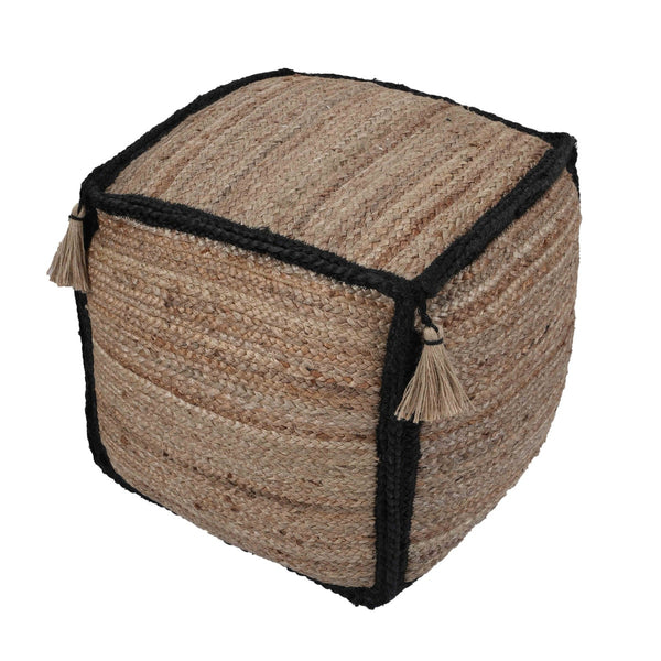 Introducing the Briana Braided Pouf, a beautiful and natural accent to add to your space! This pouf is made of braided natural jute with black accents, and includes joyful tassels on the corners.