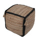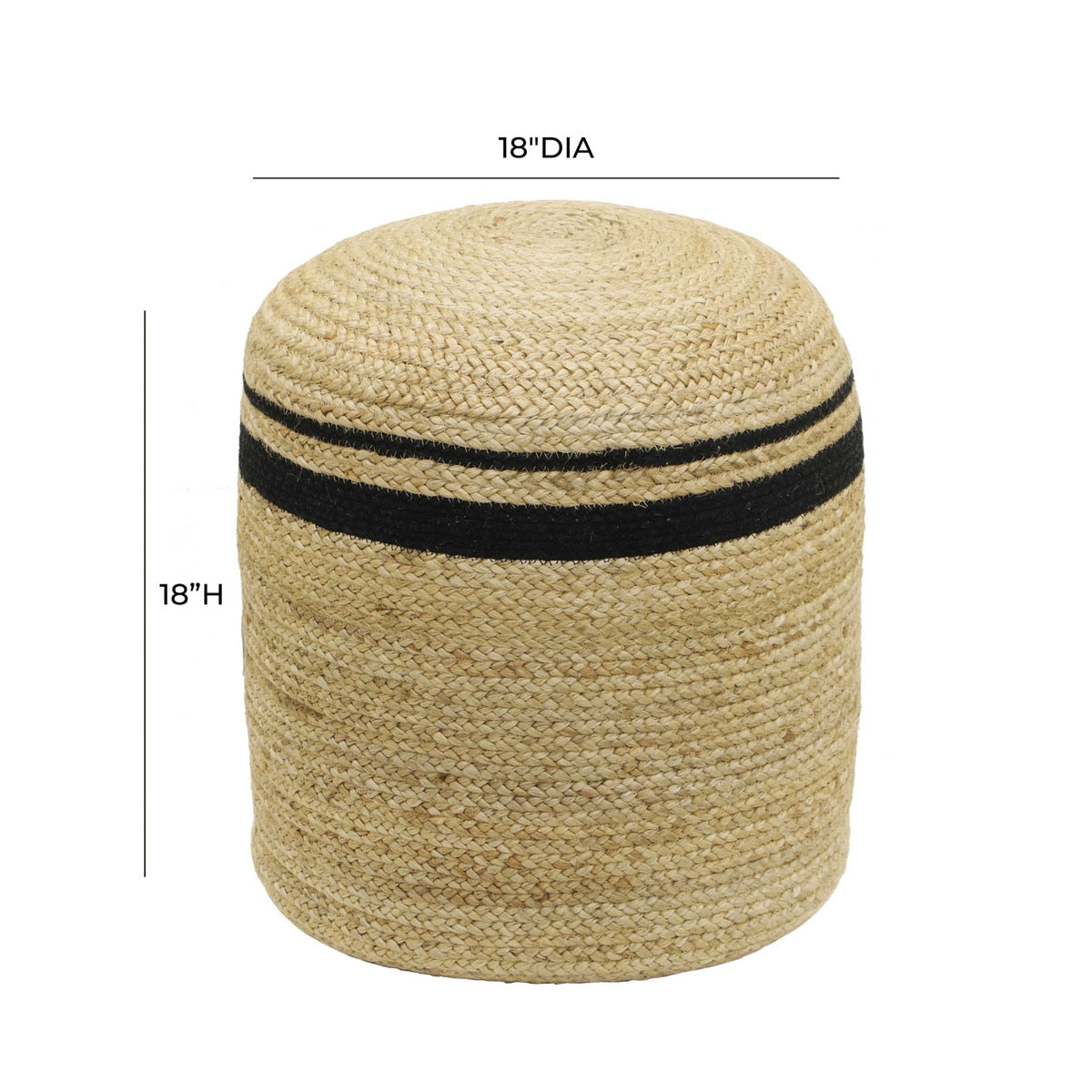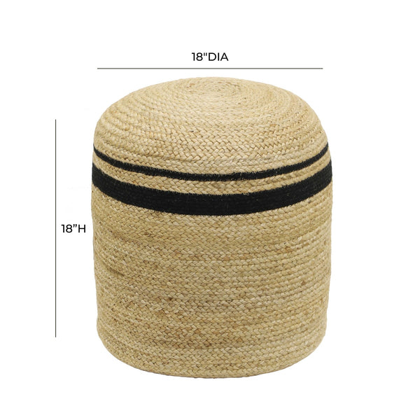 Introducing the Emerge Round Pouf is a versatile and natural addition to your home decor. This pouf is handcrafted from high-quality jute and soft cotton with a chic black striping accent. Add this item to any space to bring in a natural and modern touch!