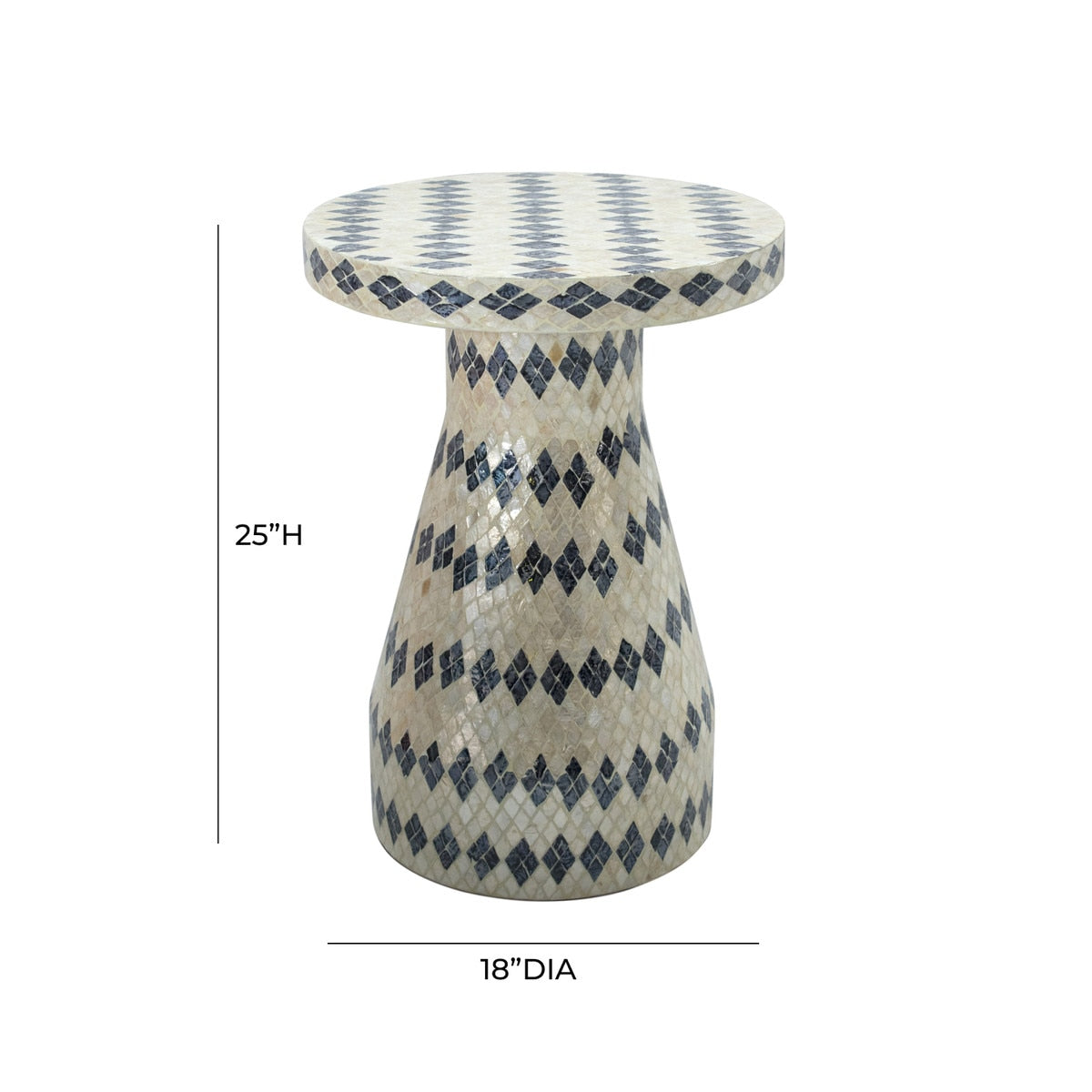 Halio Cream & Blue Checkered Shell Side Table Model: TOV-OC54309