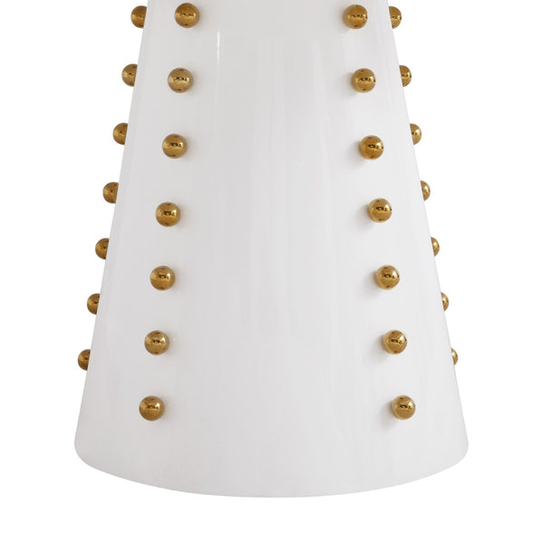 The Janice Lacquer Dinette Table is the perfect stylish addition to your dining experience. The durable wooden table is decorated in chic iron studs around its elegant pedestal base. Finished in high gloss white lacquer, this table is sure to be an eyecatcher!