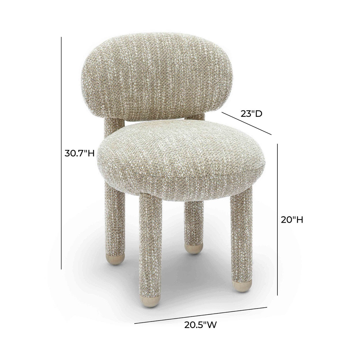 The Manu Vanity Side Chair perfectly combines style and comfort with its supportive backrest, exceptional cushioning, and sturdy solid wood legs. Available in chic fabrics like Nubby Teal, Nubby Beige, Cream Boucle, and Rose Pink Boucle, this chair is a modern twist on retro elegance. Whether gracing your vanity, desk, bedroom, entryway, or serving as a whimsical dining chair, the Manu is sure to add a touch of charm and whimsy to any space.