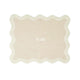 Enhance your Shabbat table setting with the TOV Wavy Challah Cover! This isn't just any challah cover; it is crafted from a stylish linen-cotton blend and features a durable, wipeable vegan leather backing. It skillfully combines contemporary style with timeless tradition. Available in soft sea blue, sleek cream and black, or stylish taupe, the trendy scalloped design and modern "Shabbat" lettering make it a perfect addition to any modern Jewish home.