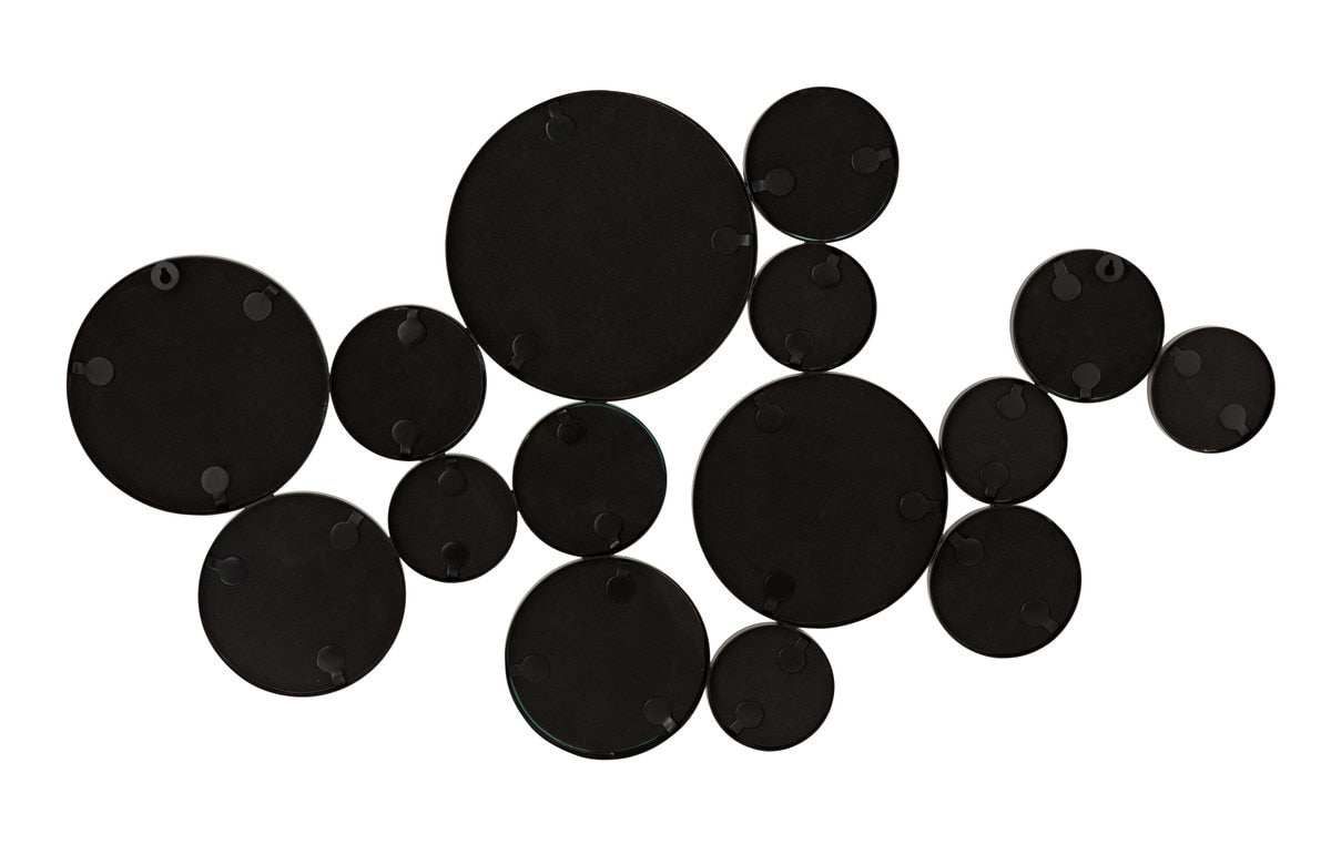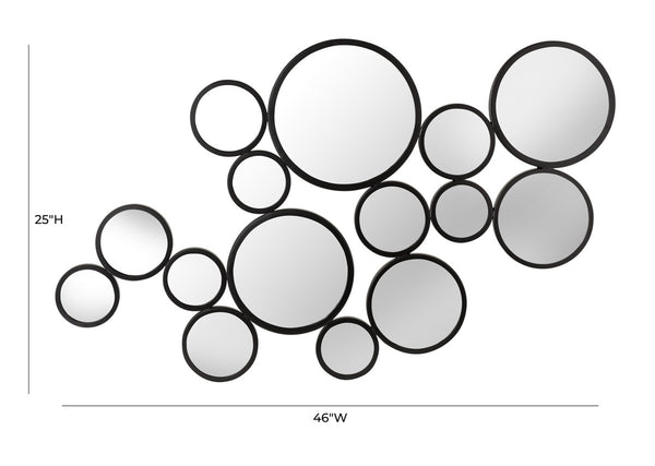 Fifteen multi-sized round mirrors combine to create a dramatic addition to your space. We love its contemporary-yet-glamorous feel.