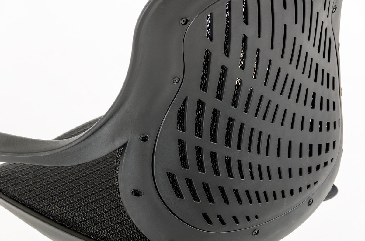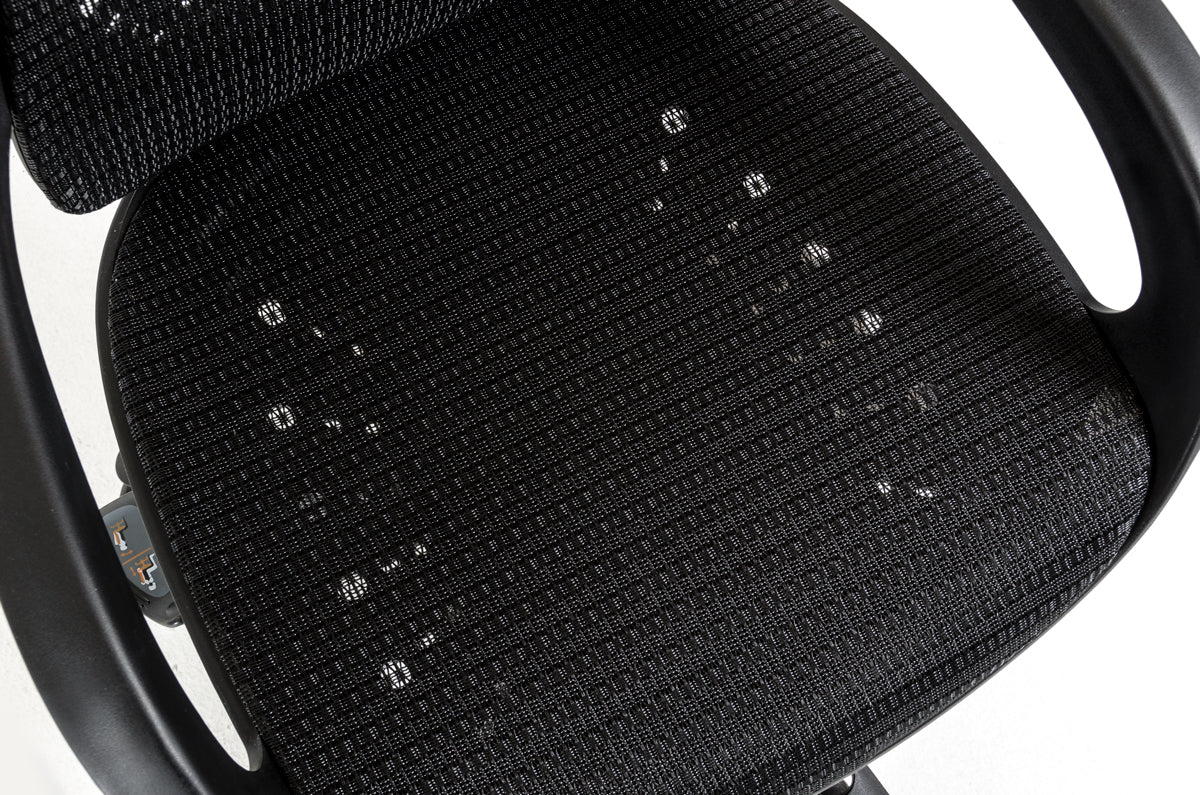 Help manage your stress at work with the Claudia Office Chair. This stylish design features a black mesh fabric seat and back, black plastic frame and black plastic star base with stainless steel accents. Other key features include adjustable height mechanism, swivel base, tilt control and stationary armrests. This ergonomically designed chair is eco-friendly and CARB compliant, making it a healthy choice for both you and the environment.