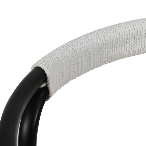 Embrace outdoor dining in style with the Pansy Cream Outdoor Dining Chair, where charm meets durability. Featuring adorable ball feet and handwoven roping on the seat, this chair adds a playful touch to your outdoor space. Its sturdy iron frame ensures lasting comfort and support, making it perfect for long meals and laughter-filled gatherings.