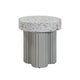 Introducing the Patti Textured Faux Travertine Indoor/Outdoor Round Dining Table- A stylish nod to Memphis design with its retro-cool vibes. The table features trendy ribbed pedestal legs and a travertine finish atop a durable concrete base, seamlessly blending vintage aesthetics with modern durability. Perfect for indoor or outdoor gatherings, the Patti Dining Table combines sophisticated design with practical functionality for a chic and inviting dining experience.