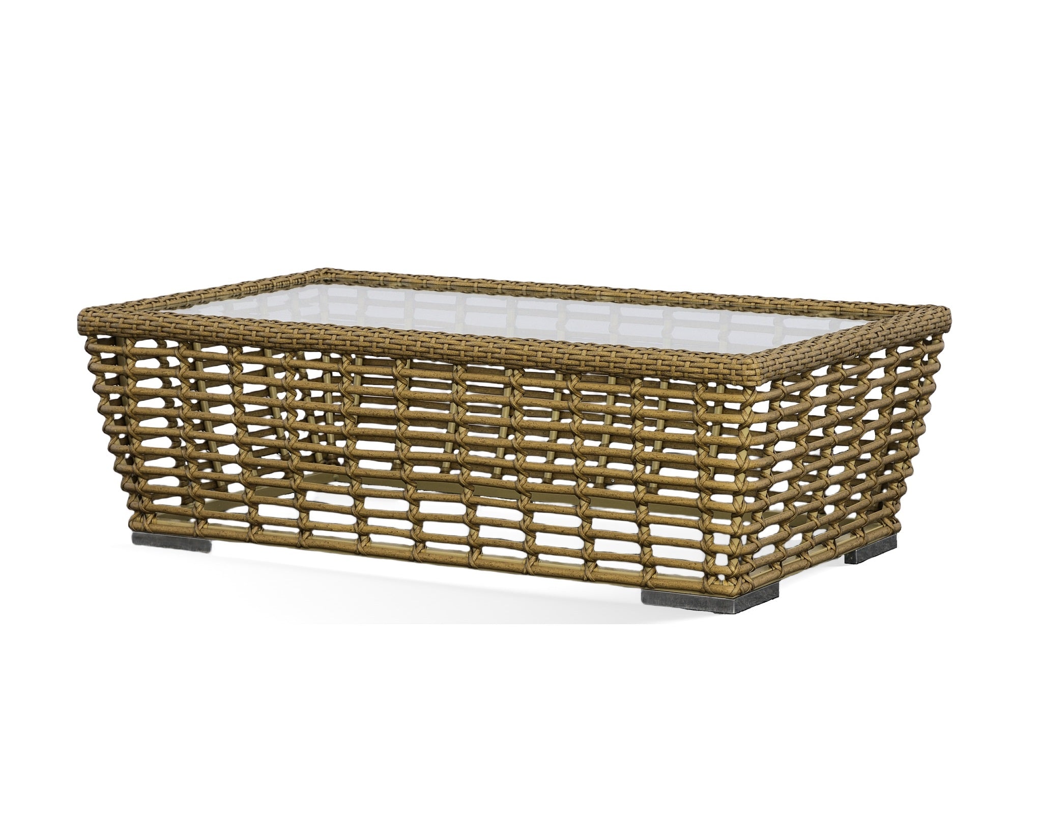 The Renava Ko Tao Outdoor Wicker Coffee Table features a stylish, rectangular design that blends modern elegance with a touch of natural charm. Constructed from durable wicker, its intricate lattice pattern offers visual interest without compromising on sturdiness. The clear glass top enhances its sophistication while providing a smooth surface for drinks and decor. Ideal for outdoor settings, this coffee table effortlessly brings warmth to patios or gardens, making it a perfect centerpiece for relaxation and social gatherings.