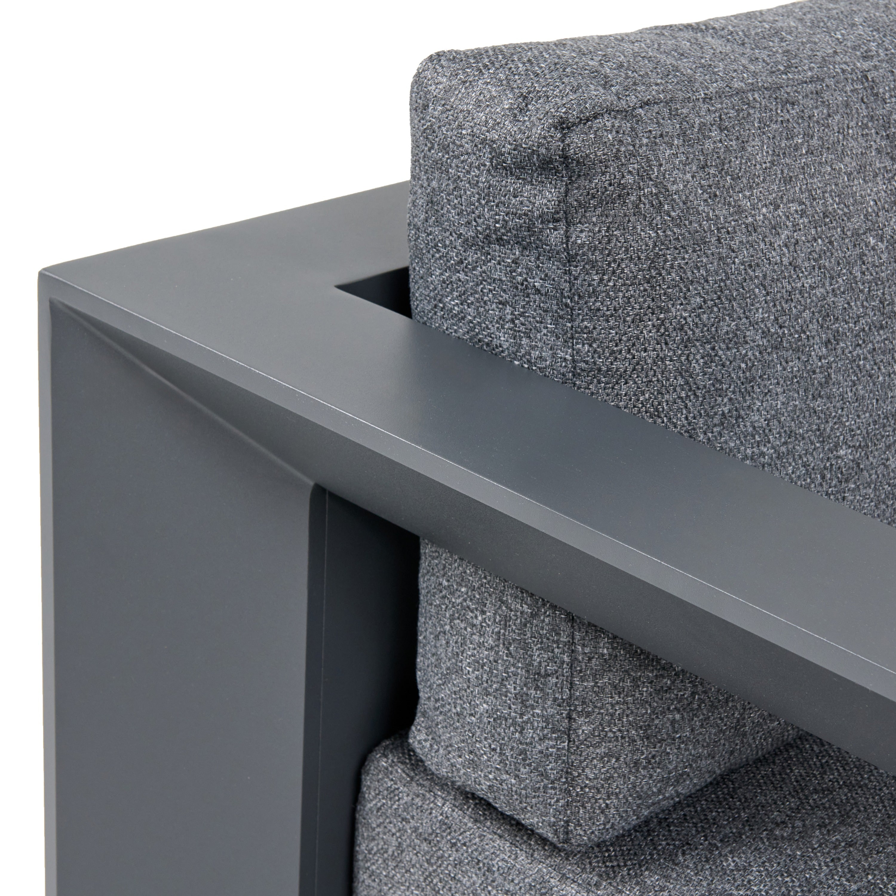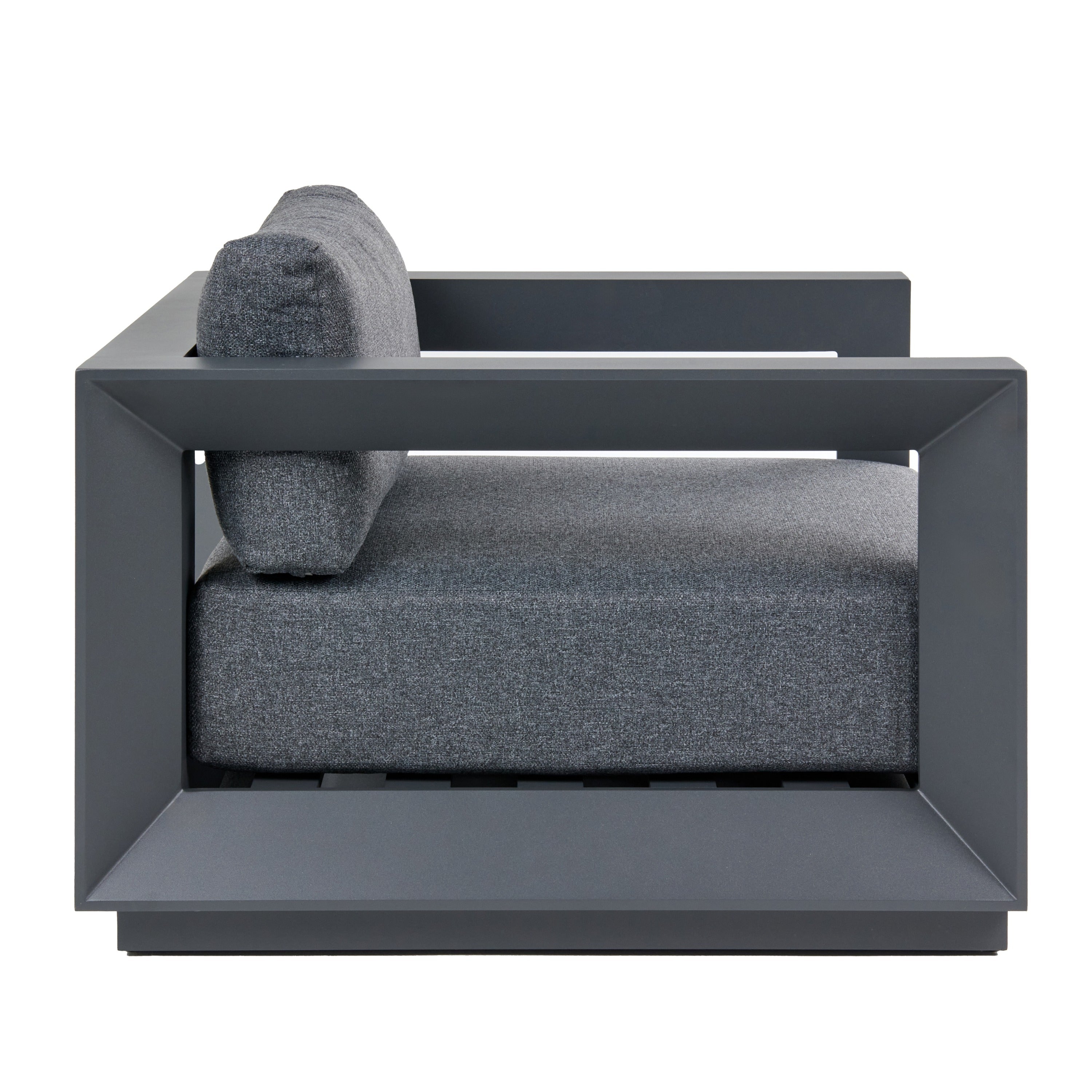 Update your outdoor setting with the Vista Outdoor collection! The collection includes a single lounge chair, a three-seater sofa and a coffee table. The pieces all feature dark grey aluminum frame and charcoal foam cushions, made from 100% weatherproof polyester. Enjoy entertaining guests with this beautiful outdoor set!