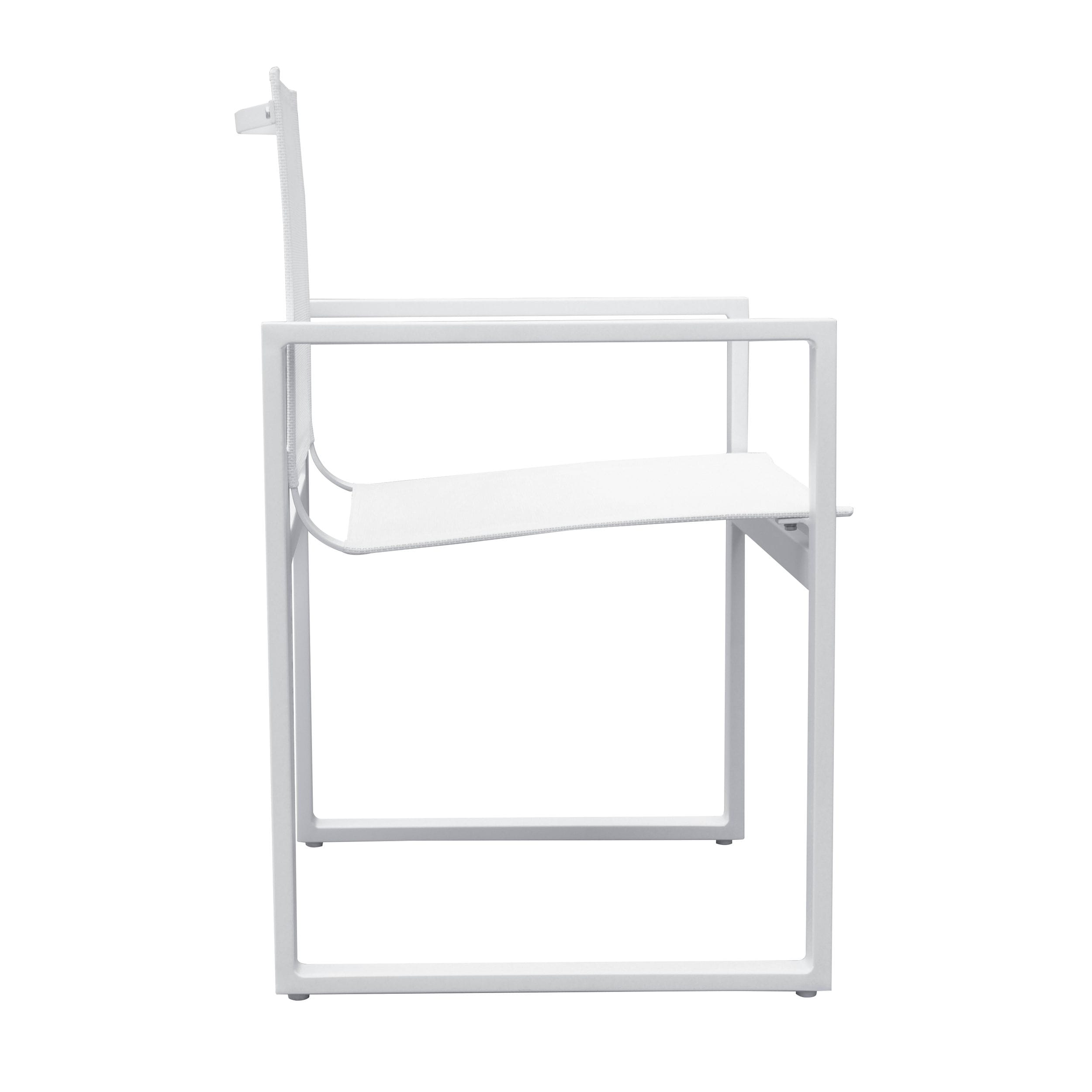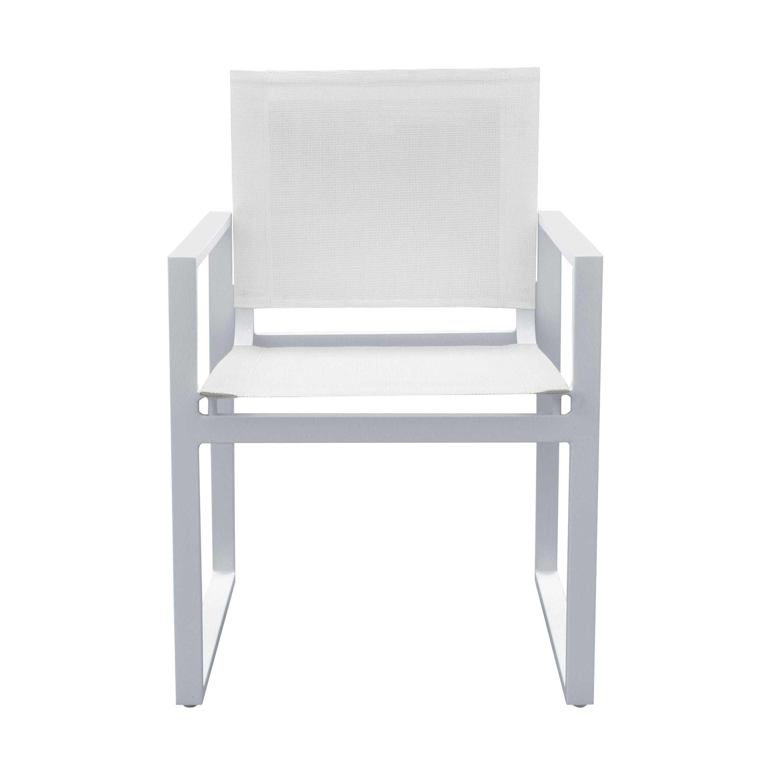 Simple and clean lines give the Renava Wake & Kayak Modern Outdoor DIning Set. The Wake Table is the perfect center piece to complete your outdoor dining set. The white aluminum metal that makes up the structure of this table is lightweight and capable of resisting the weather. The striking color and modern lines make this a perfect set for a modern or contemporary home. The two Kayak Outdoor Armchairs are placed at the ends of the table while the (armless) Kayak Outdoor Chairs bring the total seating arrangement up to 8.