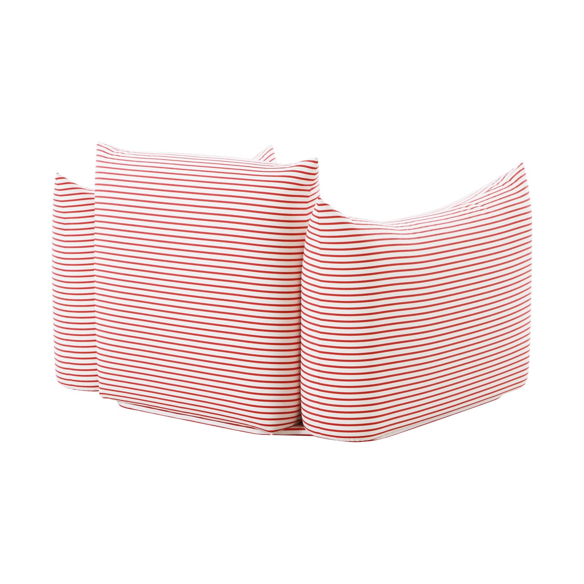 Meet Saint Tropez's bolder, outdoor counterpart. The striped Saint Tropez chair adds another layer of fun and flexibility to your life. With its playful design and sturdy construction, its pillow-ey silhouette exudes whimsical charm while offering both comfort and style. Upholstered in outdoor-safe performance fabric, this chair ensures both durability and on-trend aesthetics, solidifying its status as the must-have statement piece of the season.