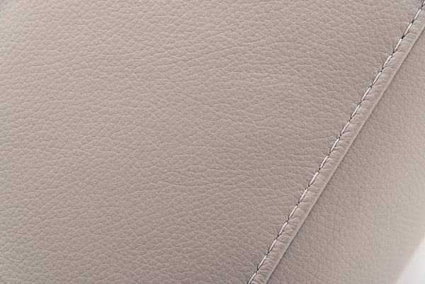 The Vilenvenue Sectional Sofa is a modern piece that highlights any contemporary home. The light grey upholstery is made of a full high grade Italian leather that perfectly encompasses the piece.The chaise is extended to create a built in side table with a walnut veneer side table, perfect for your cocktails. These warm and inviting finishes are juxtaposed by the cool finish of the stainless steel legs.